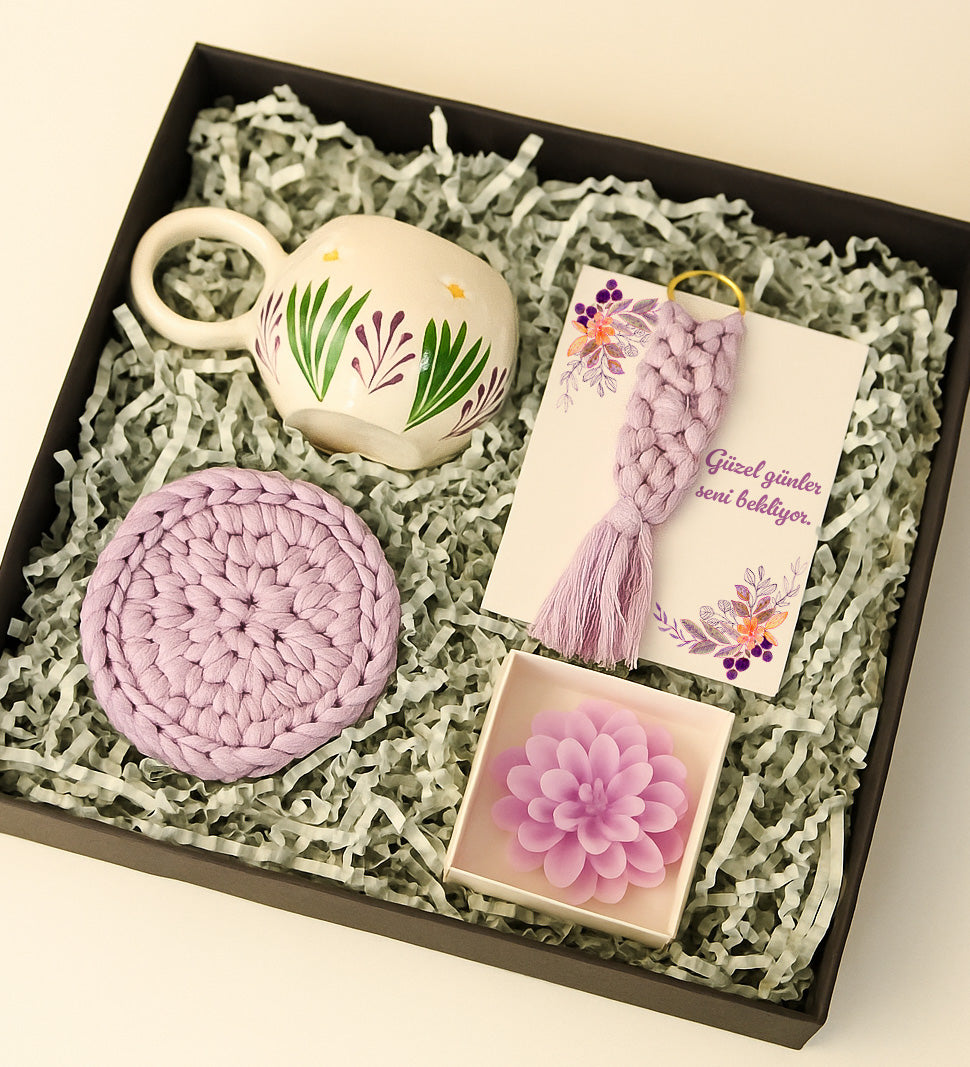 El Yapımı Kupa & Makrome Anahtarlık & Bardak Altlığı & Mum Hediye Seti