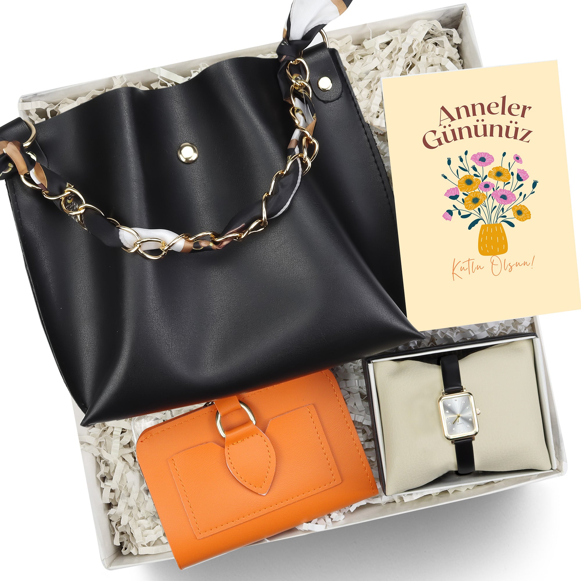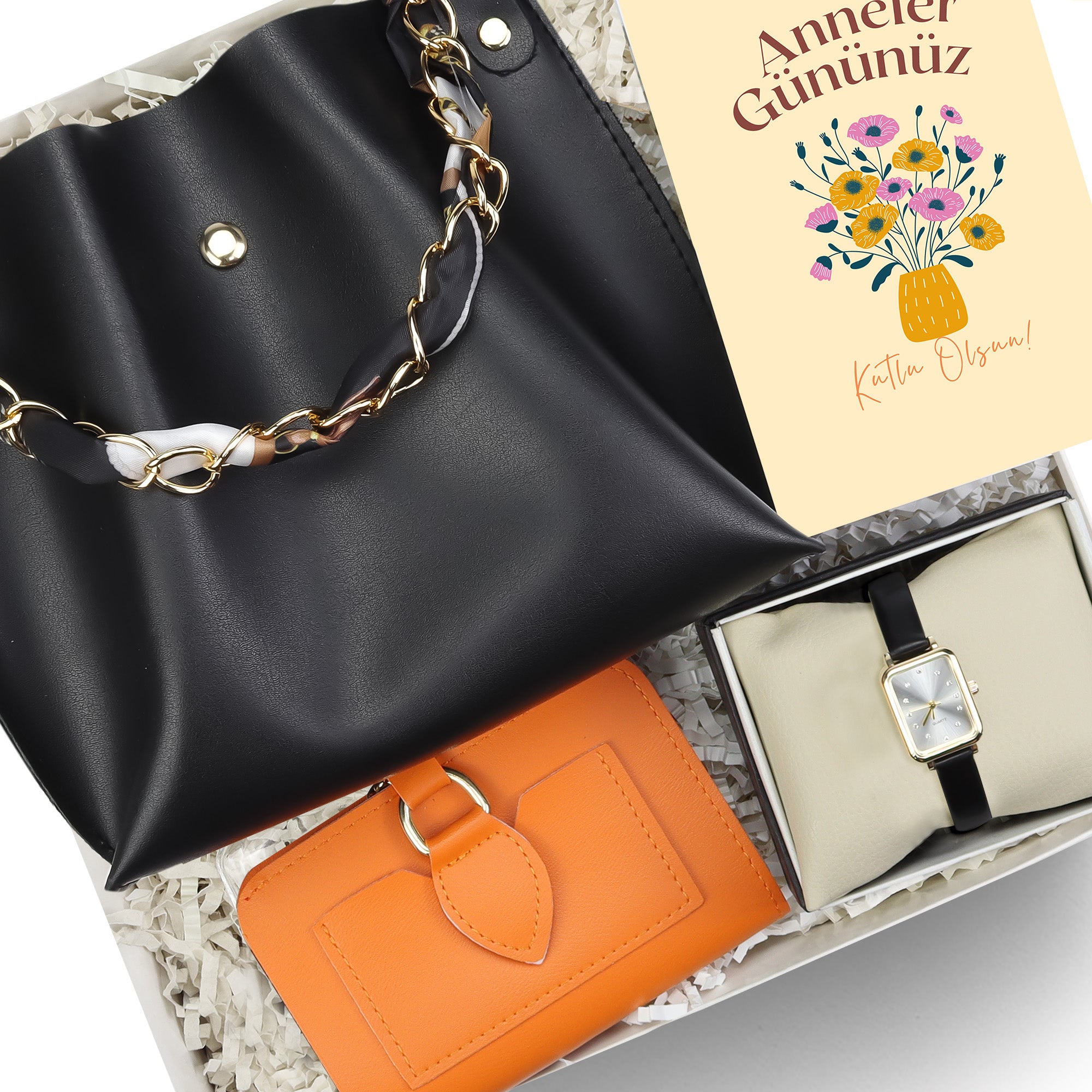 Siyah Çanta & Cüzdan & Kol Saati Hediye Seti