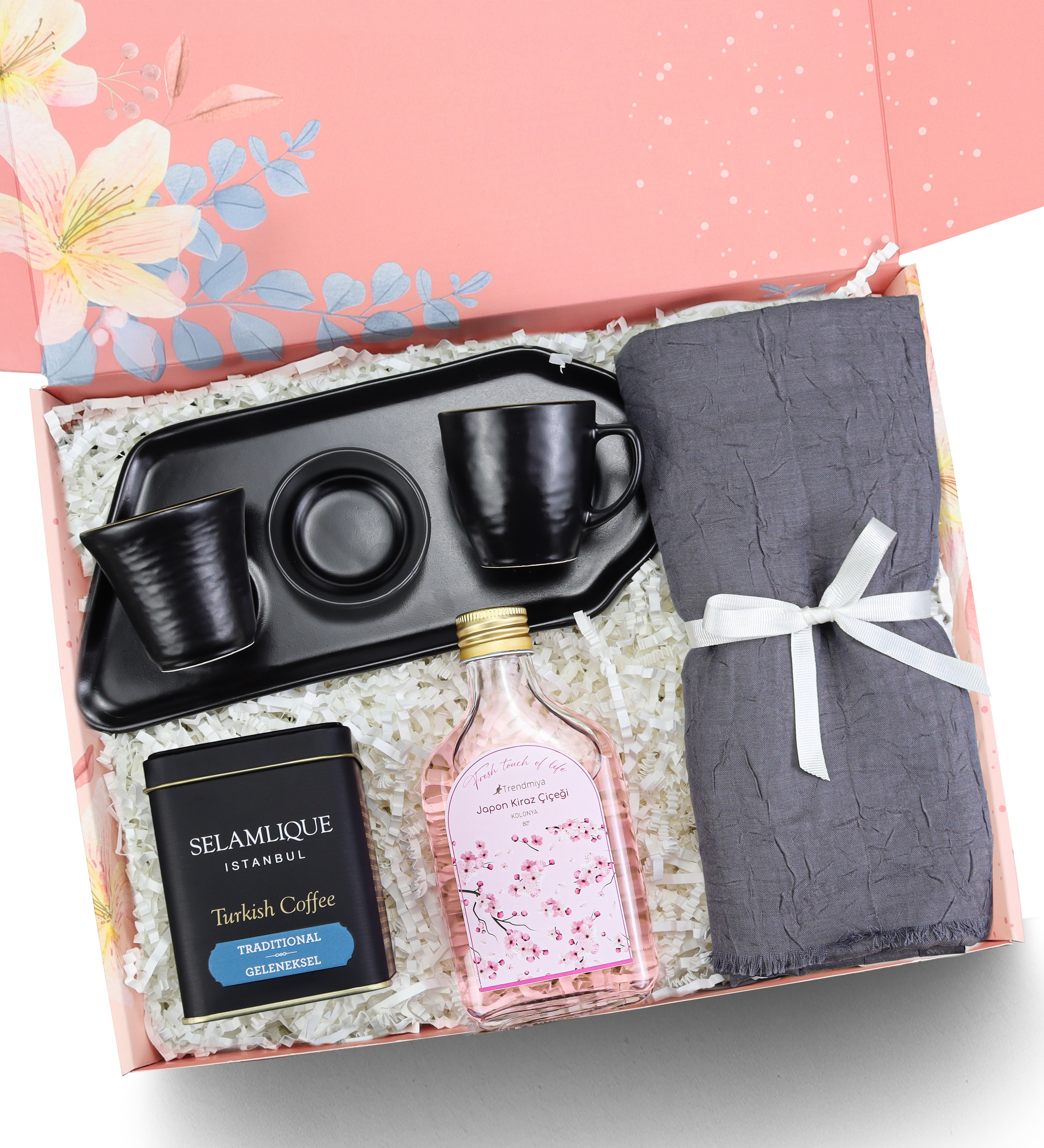 Set İçeriği : 1 Adet Türk Kahvesi Sunum Seti & 1 Adet Bambu Gri Şal & 1 Adet Selamlıque Türk Kahvesi & 1 Adet 200ml Trendmiya Kolonya