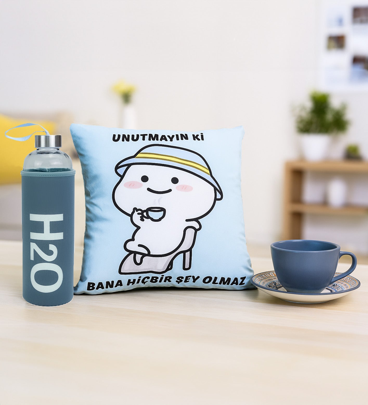 Set İçeriği: 1 Adet Matara & 1 Adet Motto Yastık & 1 Adet Çay Fincanı
