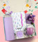Mor Matara & Beyaz Çiçekli Defter & Pembe Touchpen & Mor Fincan & Lotus Mum Hediye Seti