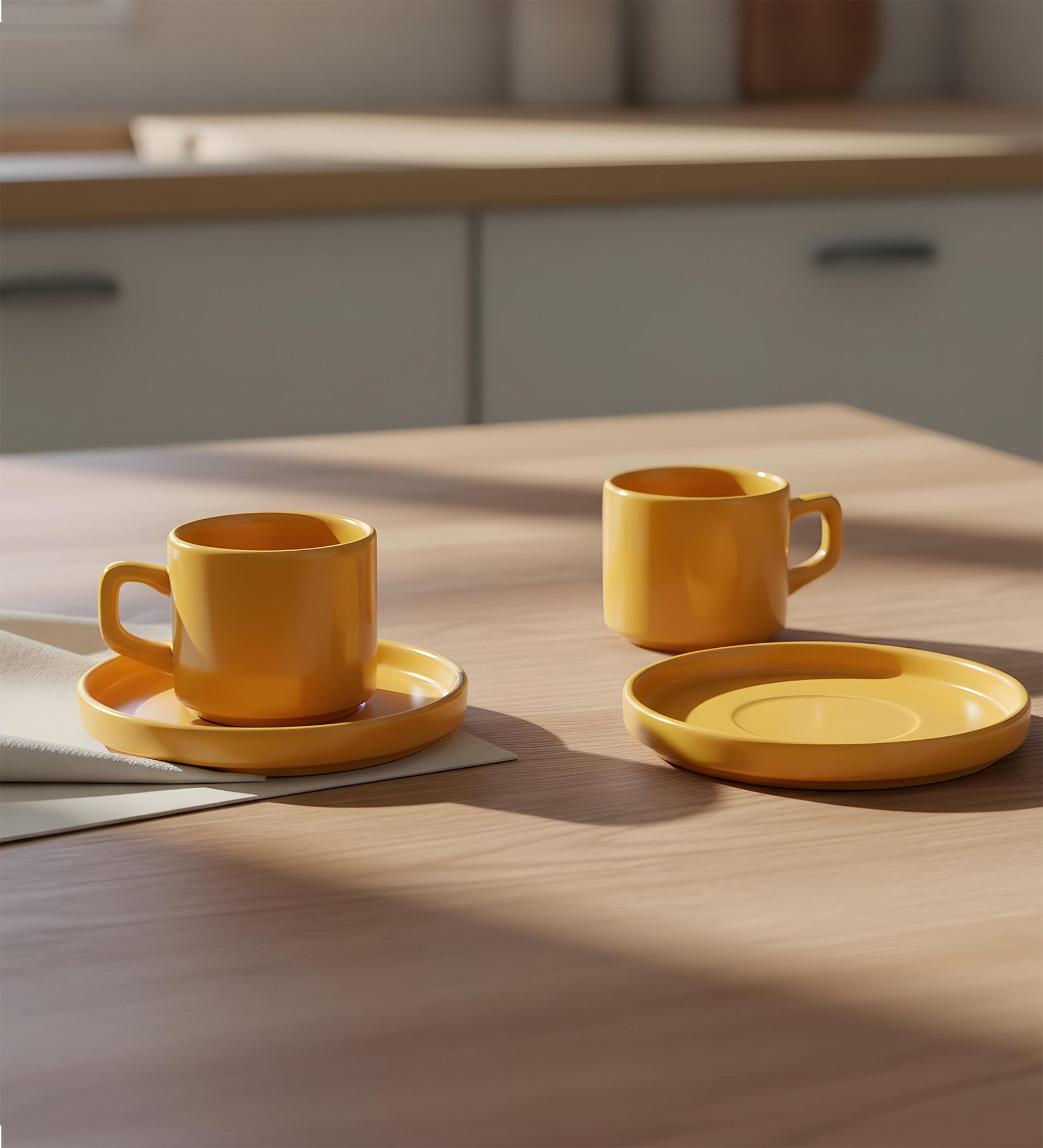 Hardal Renk 6'lı Double Türk Kahvesi Fincan Takımı