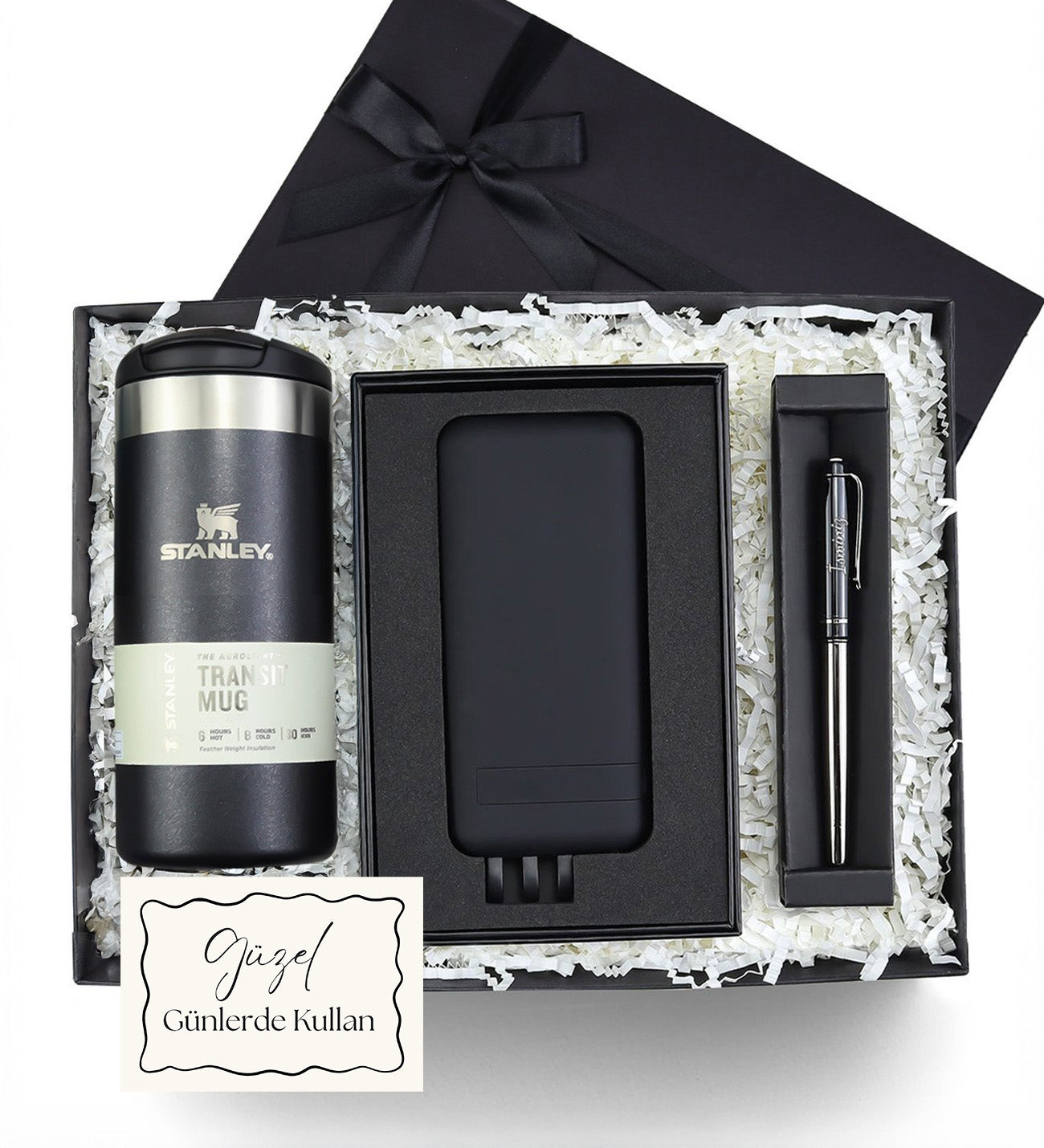 Set içeriği: 1 Adet 10000 mAh Wireless Powerbank & Kişiye Özel Metalik Kalem & 1 Adet Stanley Termos