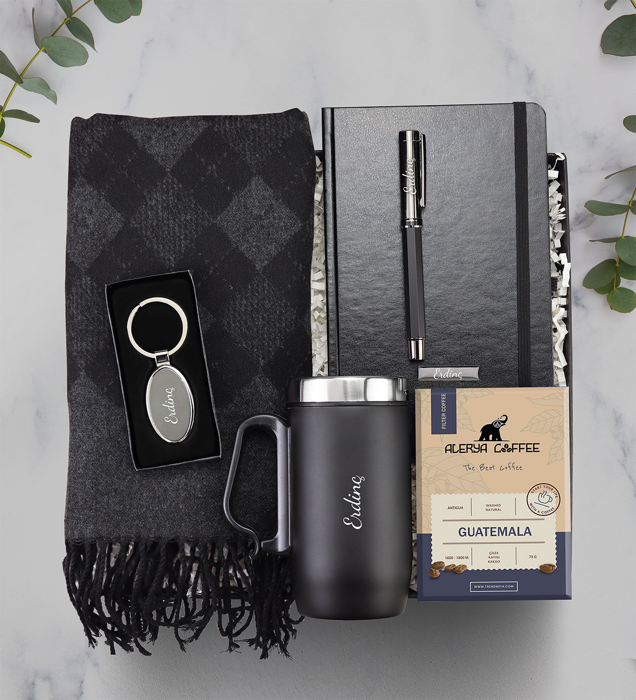 Set İçeriği: 1 Adet Atkı & 1 Adet Defter & 1 Adet Siyah Metal Roller Kalem & 1 Adet Kulplu Termos & 1 Adet Anahtarlık & 1 Adet Guatemala Filtre Kahve