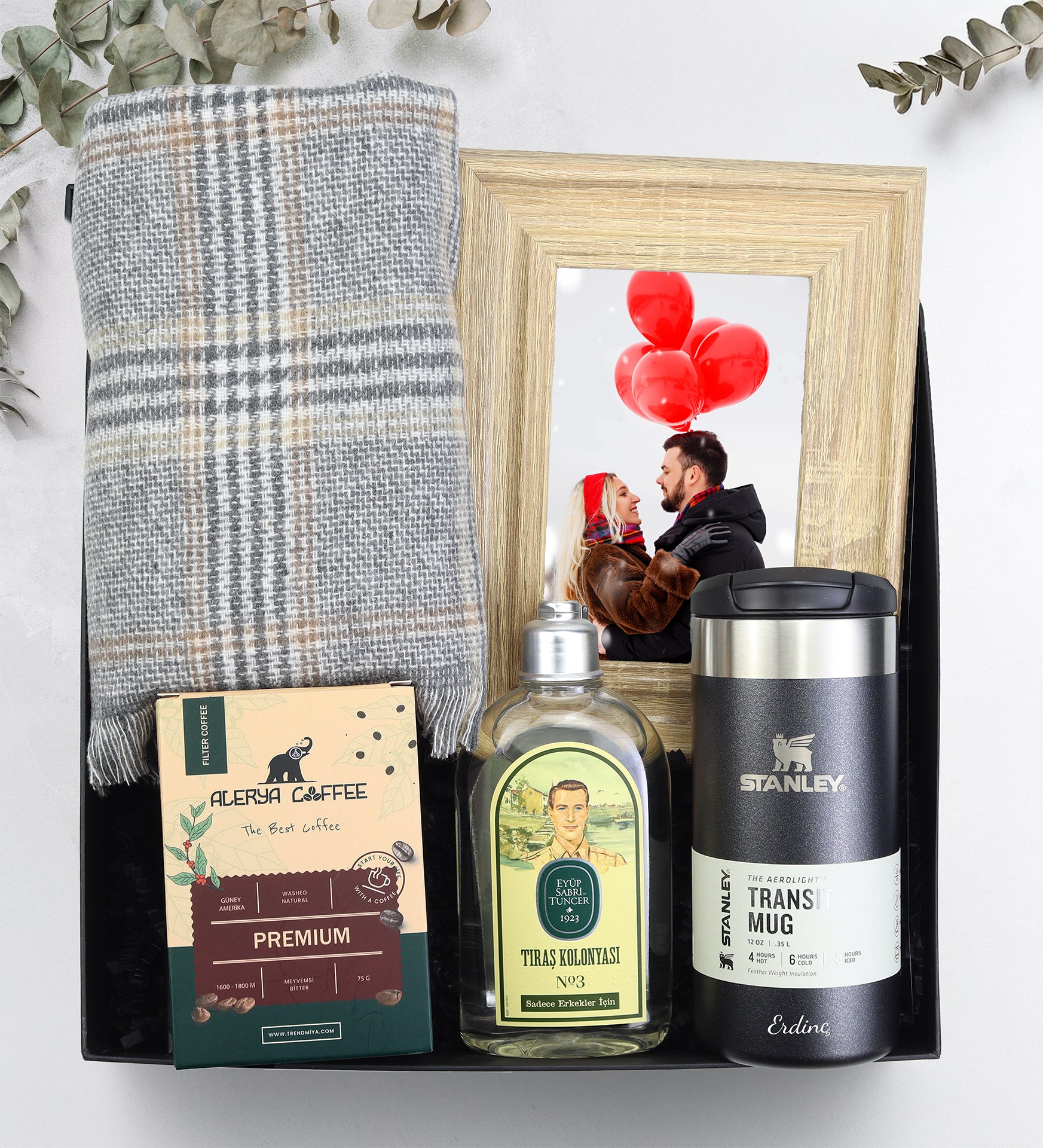 Set içeriği: 1 Adet 0,35L Stanley & 1 Adet Kalın Şal & 1 Adet Eyüp Sabri Tuncer Tıraş Kolonyası & 1 Adet Dokulu Çerçeve & 1 Adet Alerya Filtre Kahve