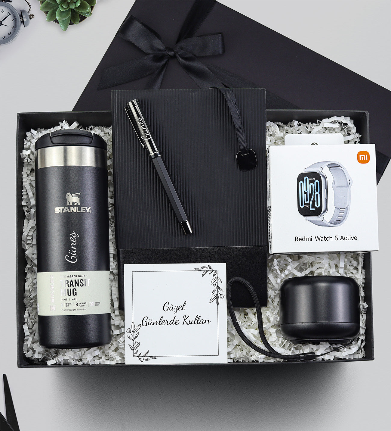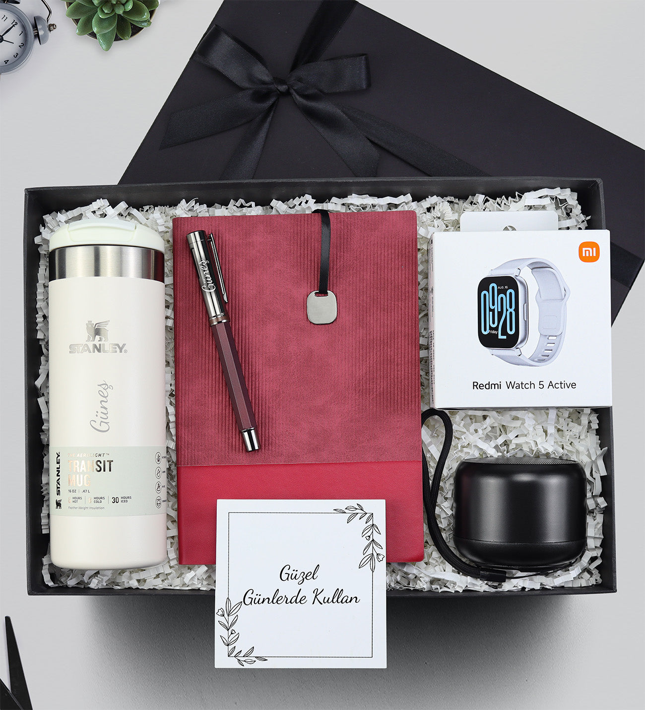 Set İçeriği: 1 Adet Stanley Termos & 1 Adet Esnek Kapak Defter & 1 Adet Metalik Kalem & 1 Adet Xiaomi Redmi Watch 5 Active Akıllı Saat & 1 Adet Hoparlör