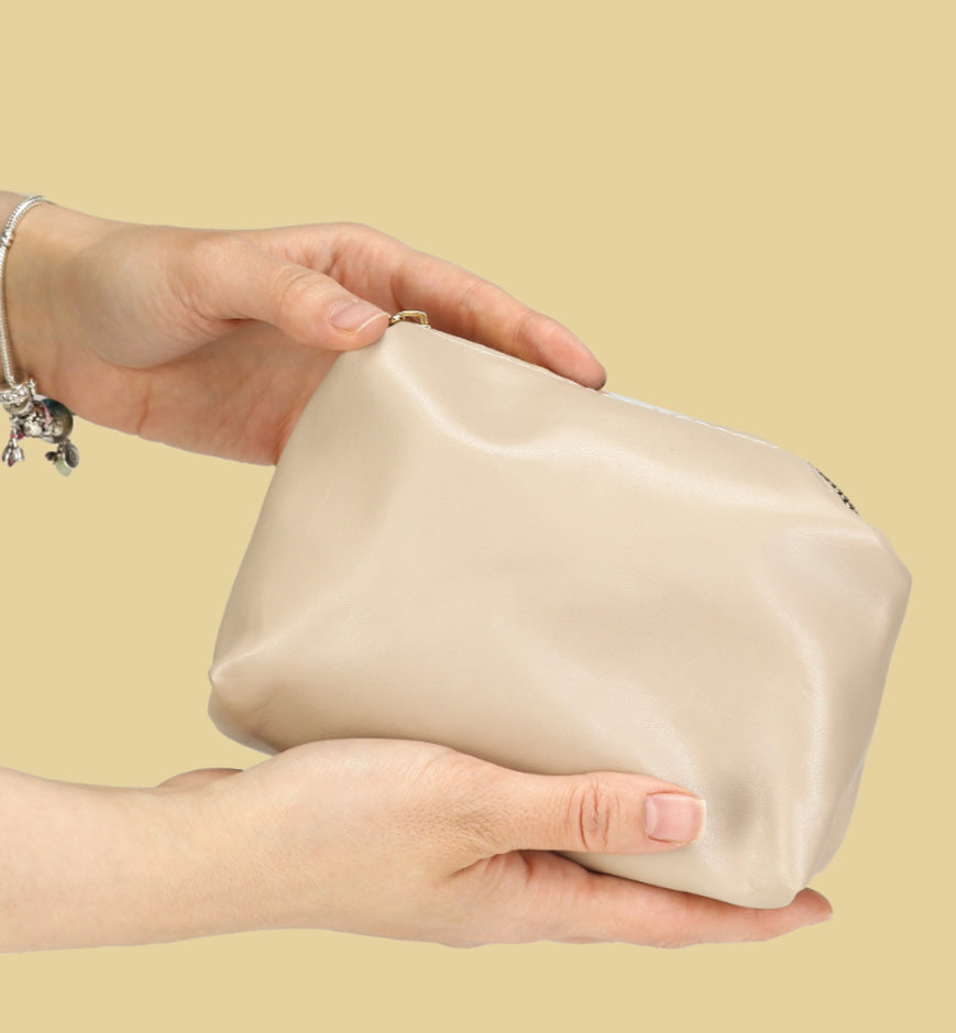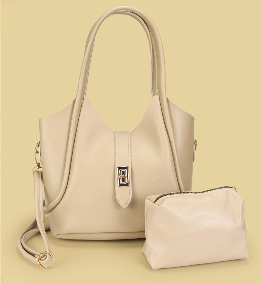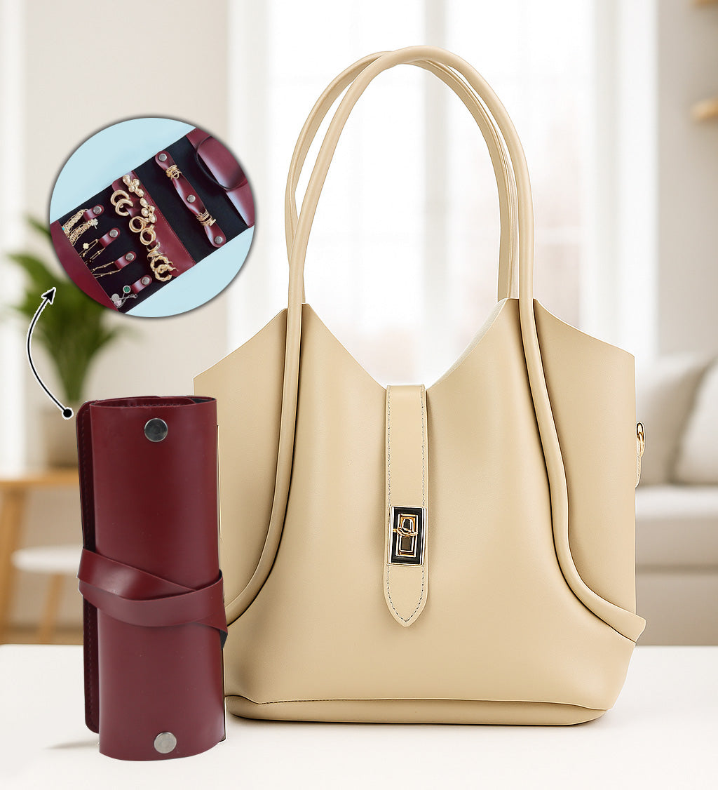 Set İçeriği: 1 Adet Katlanabilir Aksesuar Çantası & 1 Adet Bej Yavrulu Kadın Kol Çantası