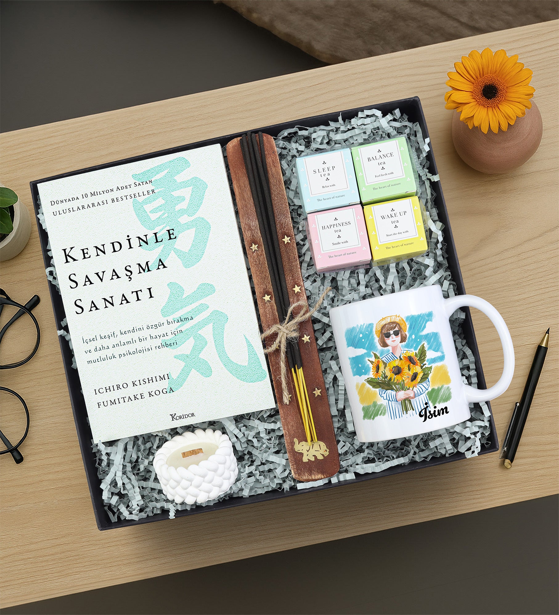 Set içeriği: 1 Adet Kendinle Savaşma Sanatı & 1 Adet Tütsü & 4 Adet Bitki Çayı & 1 Adet Örgü Mum & 1 Adet Kupa