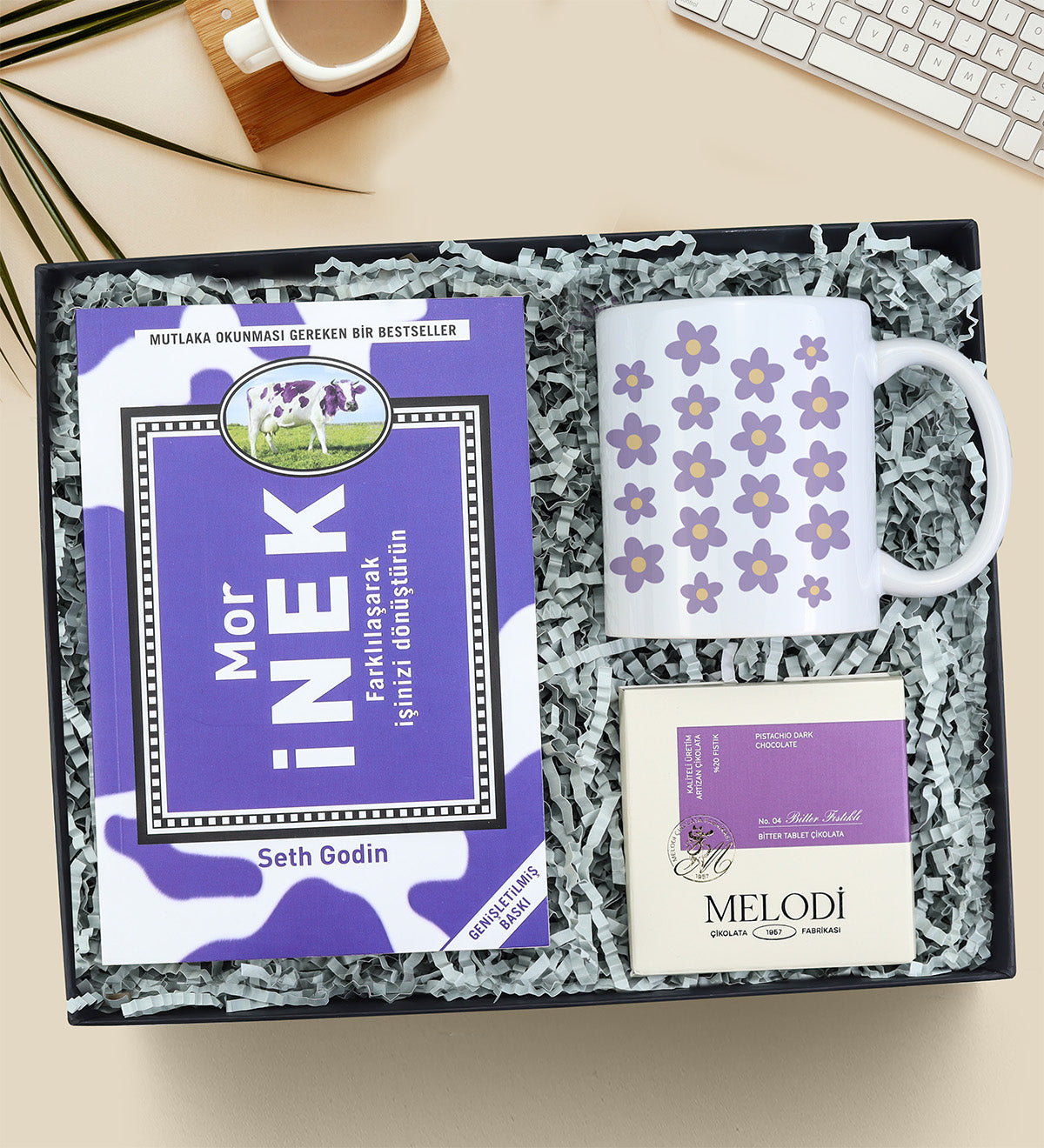 Mor İnek Kitabı & Kupa & Melodi Çikolata Hediye Seti
