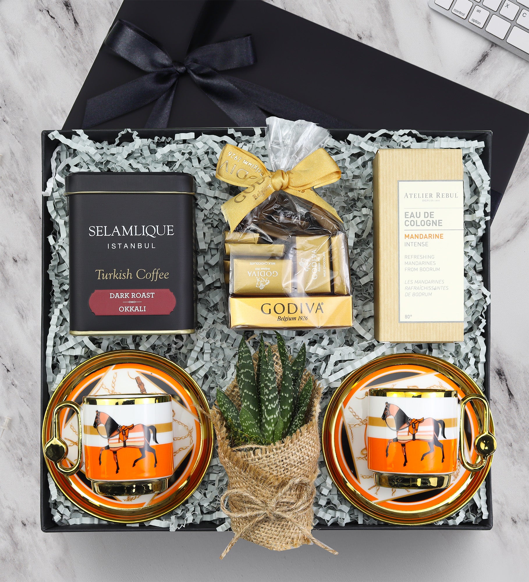 Set İçeriği: 1 Adet Godiva Napoliten Çikolata & 2 Adet Tasarım Porselen Fincan & 1 Adet 125gr Selamlıque Türk Kahvesi & 1 Adet Atelier Rebul Kolonya 50 ml & 1 Adet Canlı Sukulent Çiçek