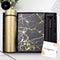 Kişiye Özel 500 ML Dereceli Gold Termos & Siyah Mermer Desen Defter & Siyah Mat Roller Kalem Hediye Seti