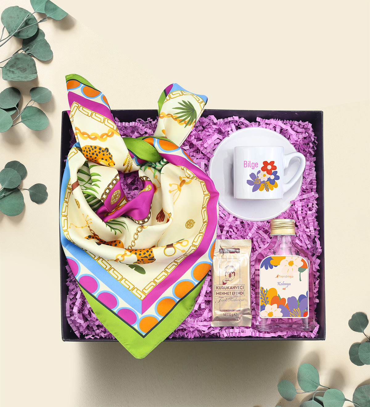 Kişiye Özel Fincan Fular Kahve Kolonya Kadına Hediye Seti