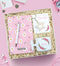 Set içeriği: 1 Adet Kişiye Özel Pembe Tasarım Defter & 1 Adet Beyaz Tükenmez Kalem & 1 Adet T Kupa &1 Adet Fular
