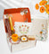Turuncu Çiçekli Kutusunda Kişiye Özel Ham Bez Çanta & Çubuk Tütsü & Turuncu Türk Kahvesi Fincanı & Kabak Lifli Sabun & Kraft Kutulu Mum