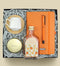 Set içeriği: 1 Adet Kişiye Özel Kupa & 1 Adet Defter & 1 Adet Kalem & 1 Adet Rebul Kolonya & 1 Adet Gümüş Detaylı Tükenmez Kalem & 1 Adet H2o Cam Başucu Sürahisi & 1 Adet Masa Üstü Ahşap Not Tutucu