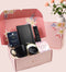Pembe Çiçekli Kilitli Kutusunda 300 ML Siyah Kristal Çelik Termos & Metalik Roller Kalem & Defter & Siyah Paspartulu Çerçeve & Siyah Kupa Hediye Seti