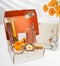 Turuncu Çiçekli Kutusunda Kişiye Özel Ham Bez Çanta & Çubuk Tütsü & Turuncu Türk Kahvesi Fincanı & Kabak Lifli Sabun & Kraft Kutulu Mum