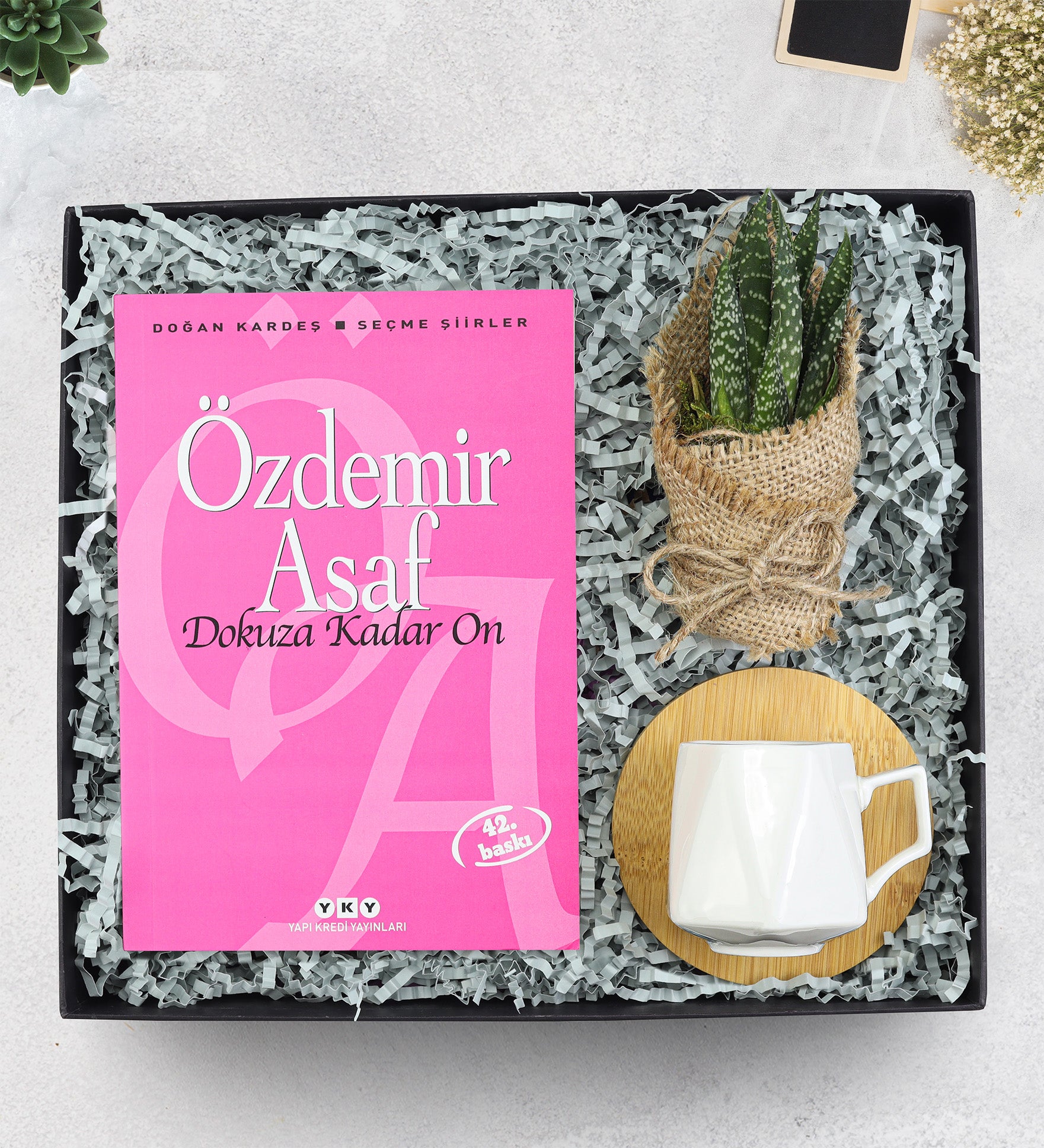 Set İçeriği : 1 Adet Kitap & 1 Adet Bambu Tabaklı Beyaz Porselen Fincan & 1 Adet Sukulent Çiçek