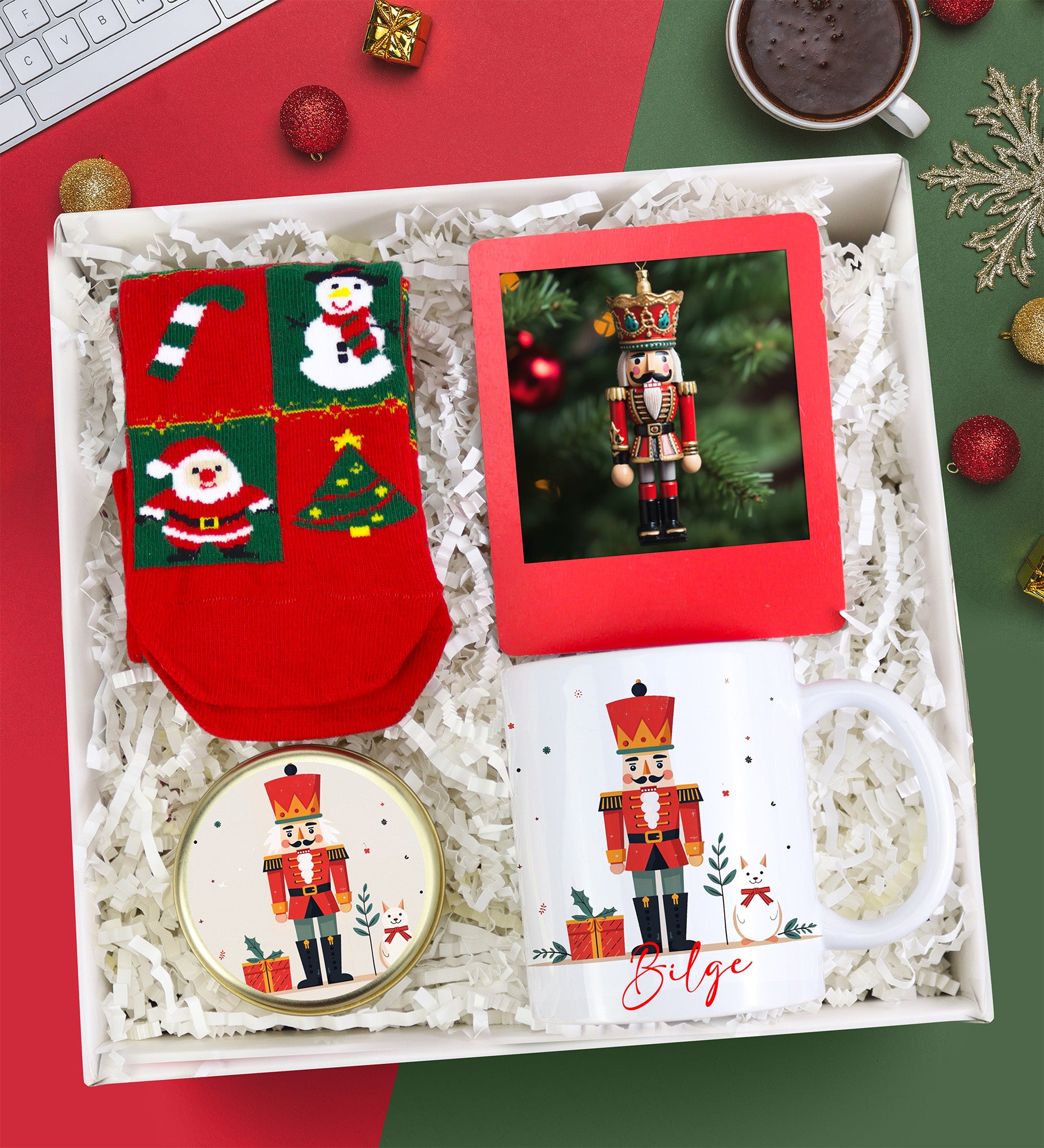 Kişiye Özel Kupa & Çerçeve & Mum & Çorap Yeni Yıl Hediye Seti