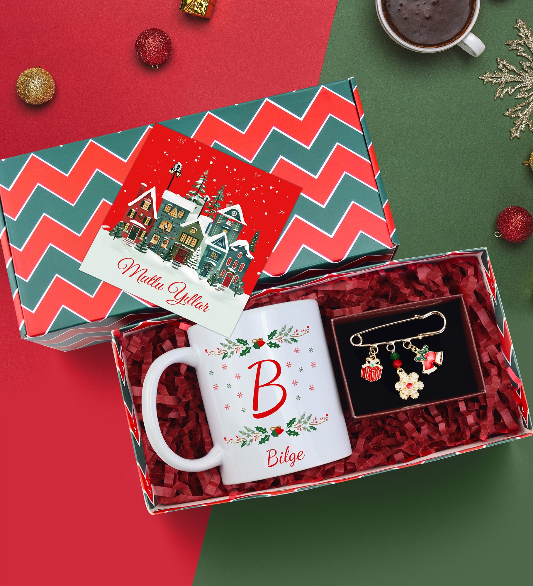 Tasarım Kutusunda Kupa & İskoç İğnesi Yılbaşı Hediye Seti