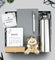 Çelik Gümüş Renk Matara & Gri Defter & Kalem & Takvim & Ayıcık Anahtarlık Hediye Seti