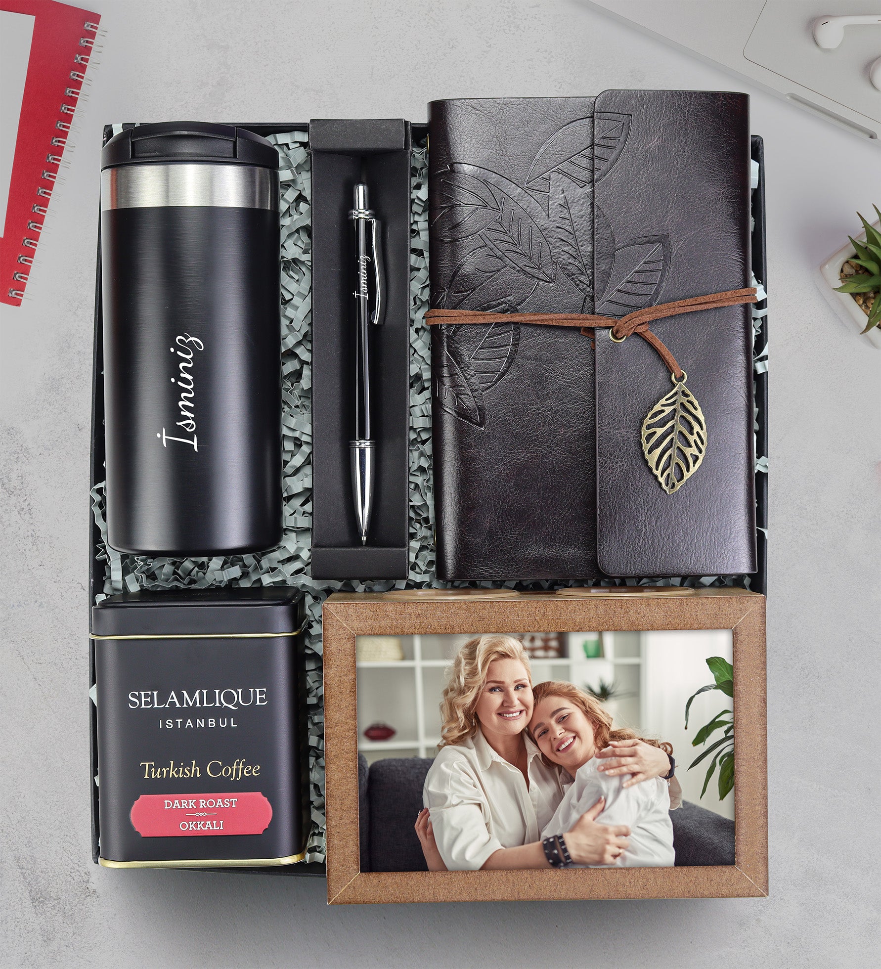 Set İçeriği: 1 Adet Anı Defteri & 1 Adet Siyah Tükenmez Kalem & 1 Adet Çelik 350ml Termos & 1 Adet Selamlıque & 1 Adet Fotoğraflı Ahşap Kalemlik