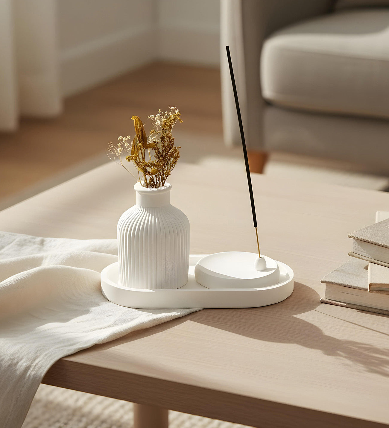 Set İçeriği: 1 Adet Dokulu Defter & 1 Adet Kalem & 1 Adet Standlı Tütsülük ve Vazo Seti & 1 Adet Bambu Tabaklı Geometrik Fincan