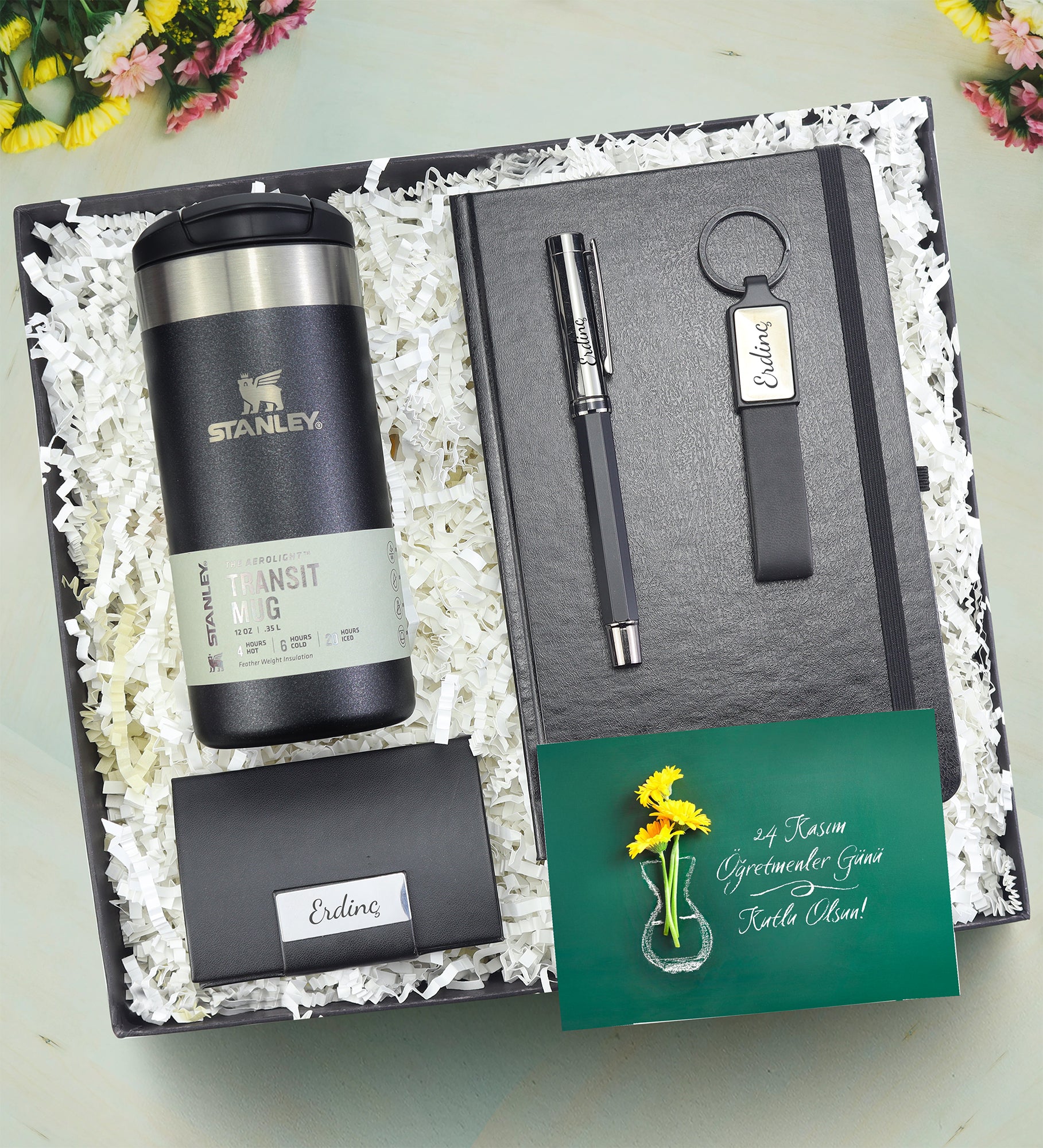 Set içeriği: 1 Adet Stanley Termos & 1 Adet Kartvizitlik & 1 Adet Defter & 1 Adet Anahtarlık & 1 Adet Kalem