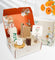 Turuncu Çiçekli Kutusunda Bambu Kapaklı 600 ml Cam Matara & Bambu Tabaklı Beyaz Fincan & Bambu Kapaklı Kavanozda Türk Kahvesi & Tohumlu Kurşun Kalem &Dikişli Mini Not Defteri & Masa Üstü Ahşap Not Tutucu