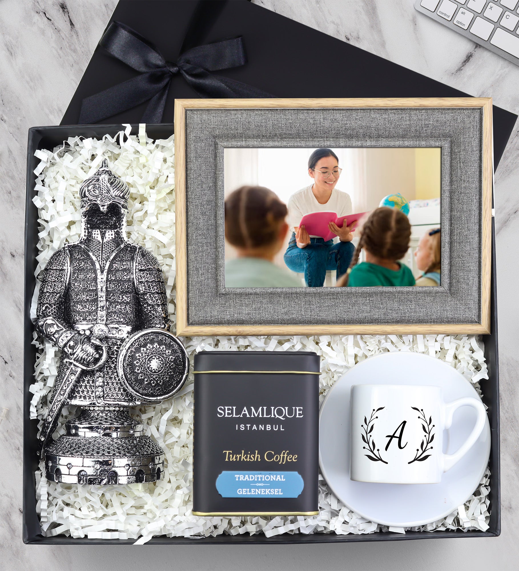Set içeriği: 1 Adet Dokulu Çerçeve & 1 Adet 125gr Selamlıque Türk Kahvesi & 1 Adet Fetih Zırh Ayetel Kürsi Biblo & 1 Adet Baskılı Fincan