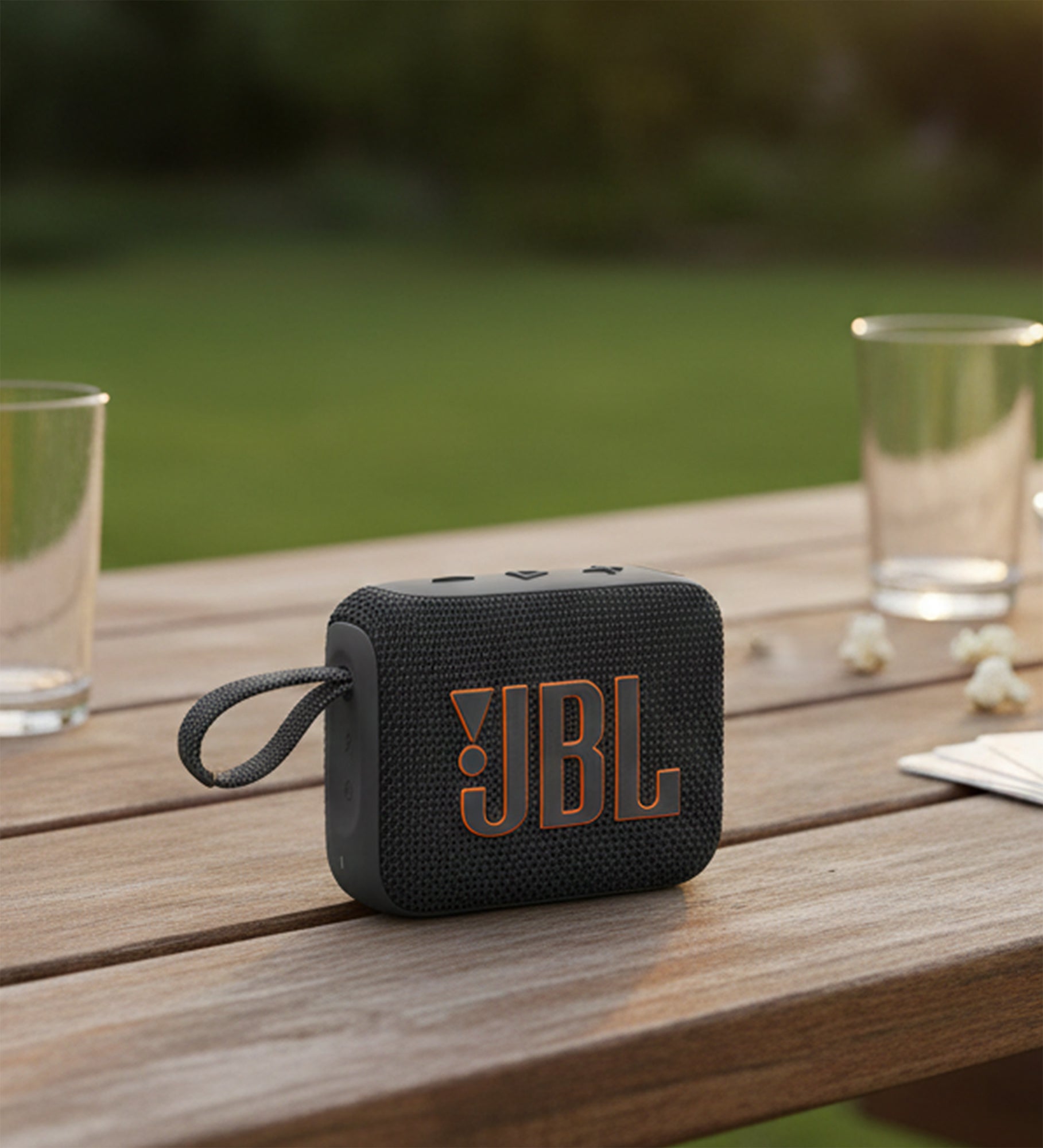 *JBL Go 4 toza ve suya karşı dayanıklı tasarımıyla havuz kenarı partilerinde veya sahildeki pikniklerde size eşlik ede