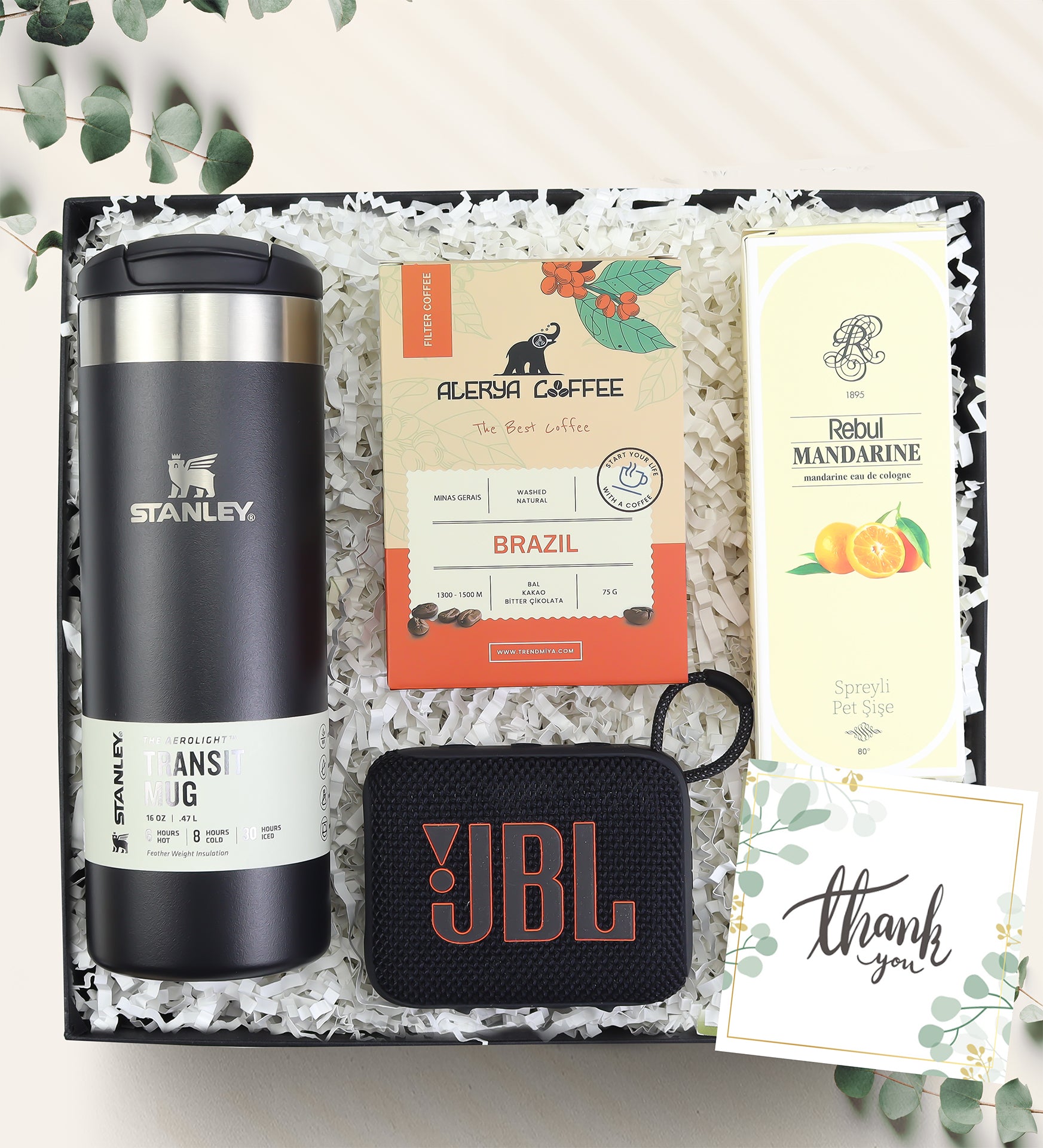 Set İçeriği: 1 Adet 75gr Alerya Filtre Kahve & 1 Adet JBL Hoparlör & 1 Adet Stanley Termos & 1 Adet Rebul Kolonya