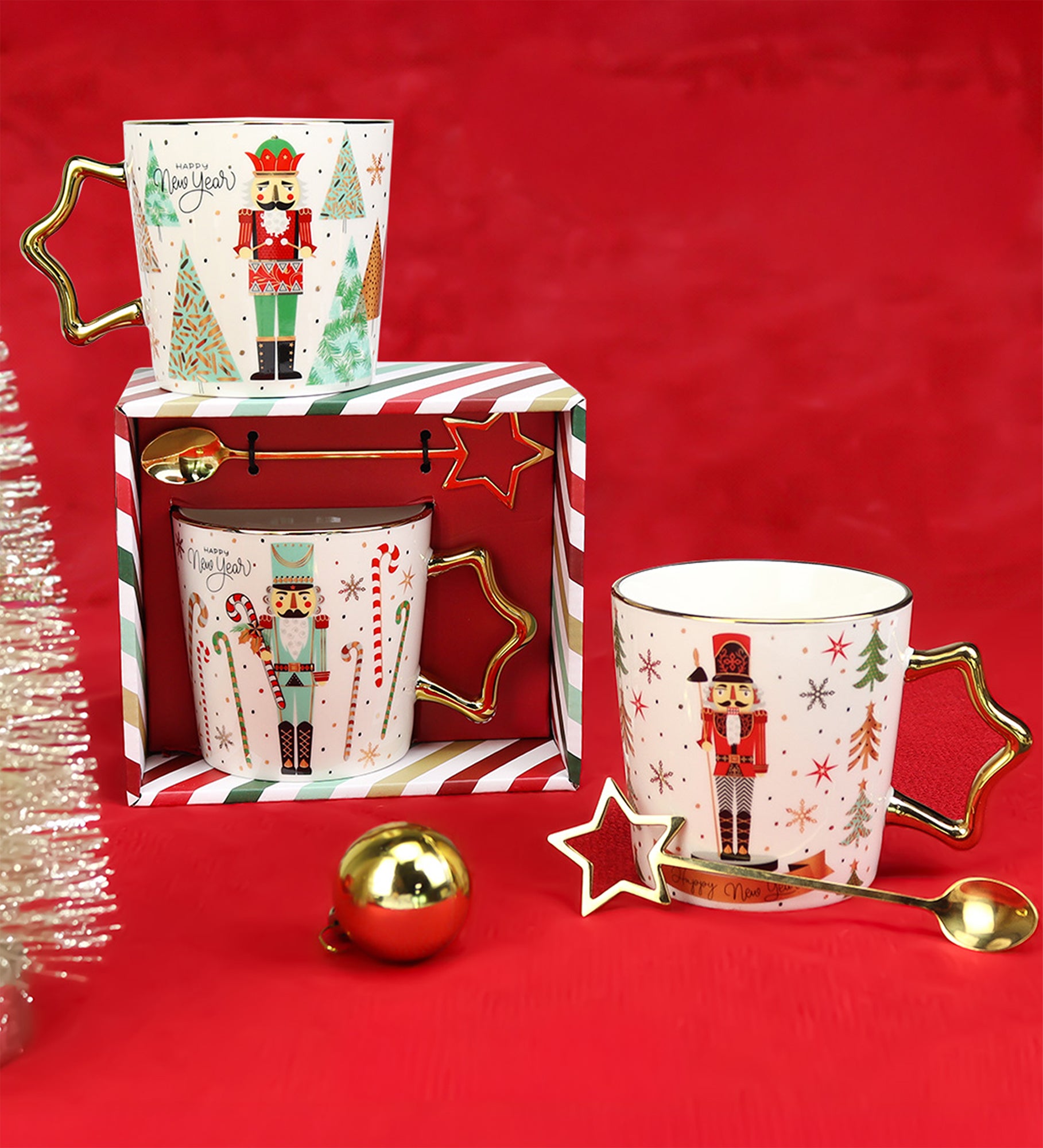 Yılbaşı Baskılı Kaşıklı Yıldız Kulplu Kupa