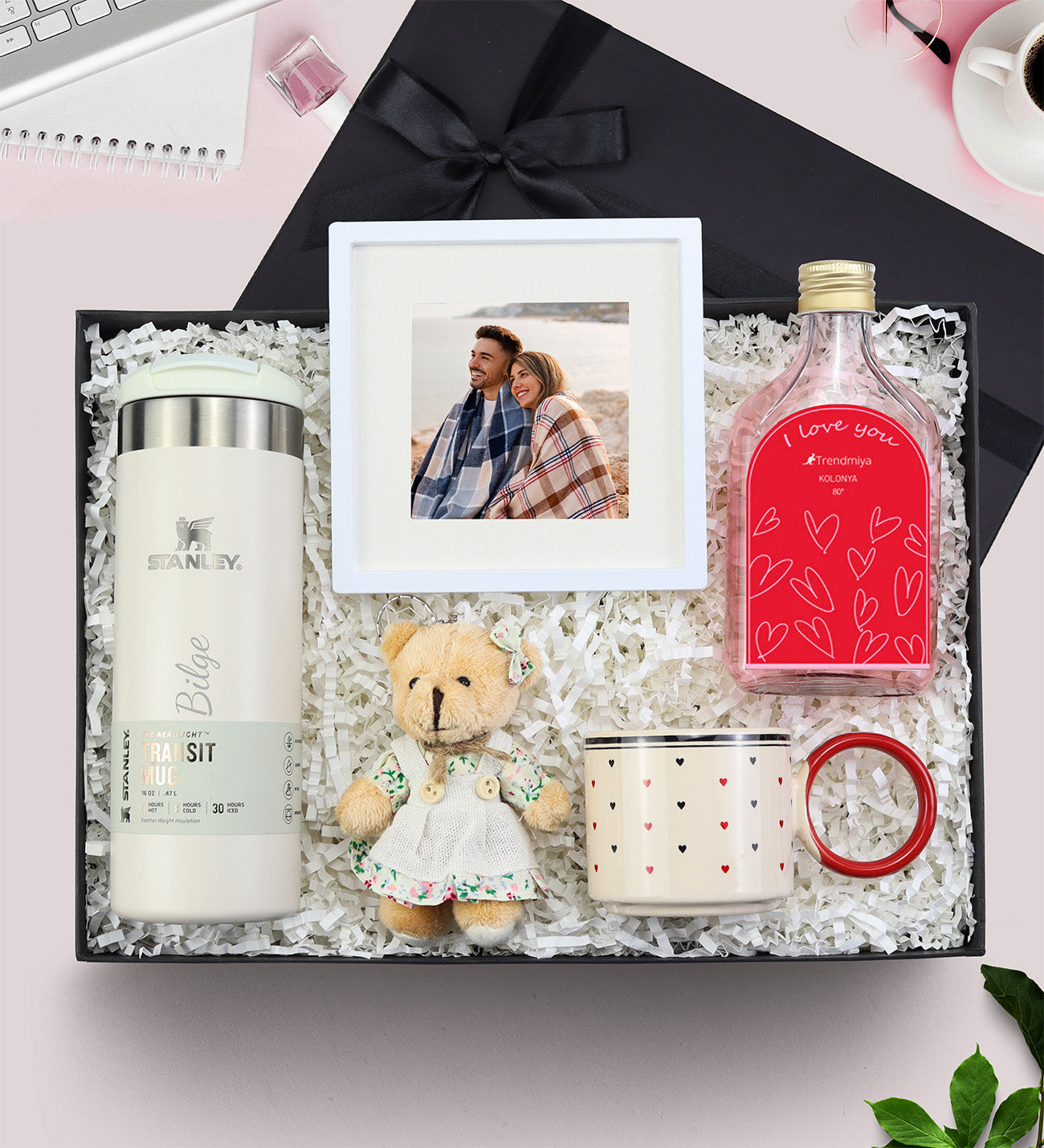 Set içeriği: 1 Adet Stanley Transit Mug Termos 0,47 L & 1 Adet Paspartu Çerçeve & 1 Adet Kolonya & 1 Adet Kalp Halka Kupa & 1 Adet Ayıcık Anahtarlık