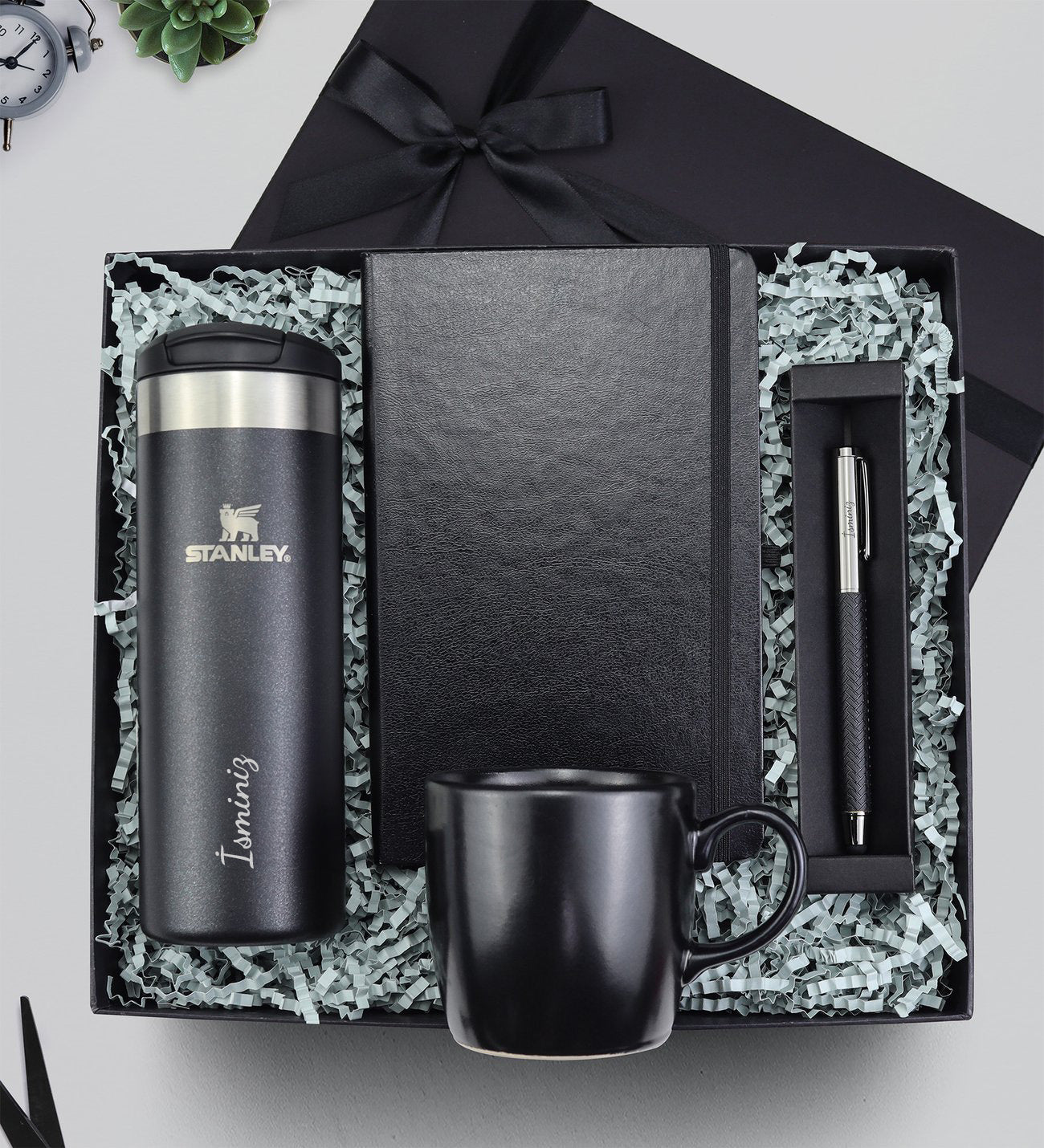 0,47 Stanley Termos & Defter & Siyah Touch Roller Kalem & Siyah Kupa Hediye Seti