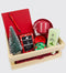 Ahşap Kasada Kırmızı Tükenmez Kalem & Defter & Metal Kutulu Mum & Mutlu Yıllar Kupa & Kalın Şal & Su Matarası Hediye Seti