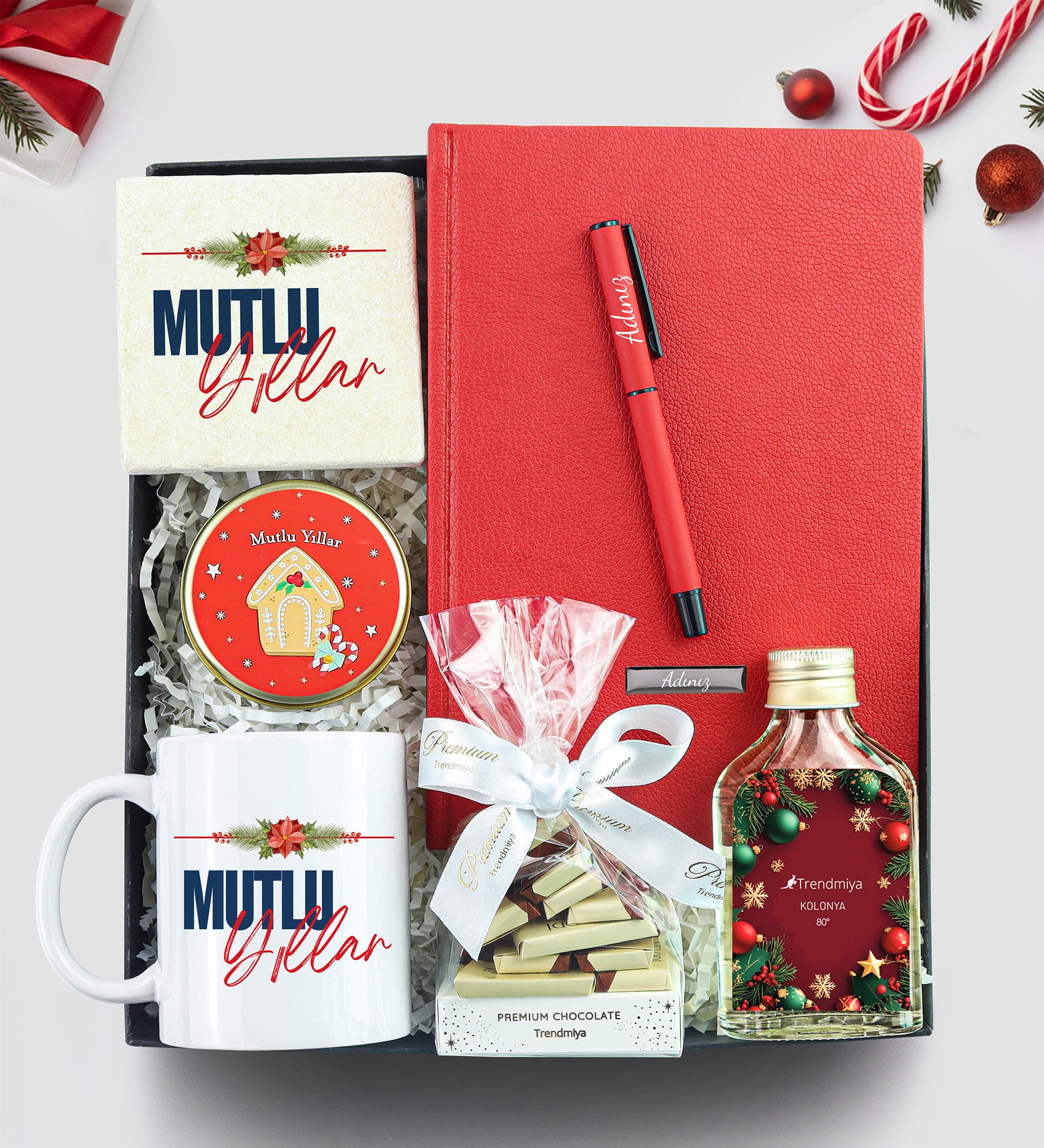 Ajanda & Kalem & Kupa & Bardak Altlığı & Kolonya & Çikolata & Mum Yılbaşı Hediye Seti