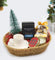 Hasır Sepetli Gold Detaylı Beyaz Fincan & Ekose Desenli Metal Kutulu Mum & 125gr Selamlıque Türk Kahvesi & Godiva Napoliten Çikolata & Ahşap Zeminli Mini Çam Ağacı Hediye Seti