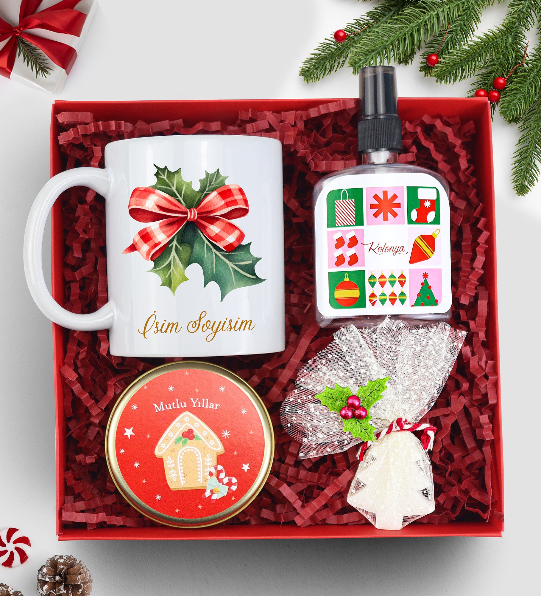 Kupa & Kolonya & Mum & Mini Çam Ağacı Sabun Yılbaşı Hediye Seti
