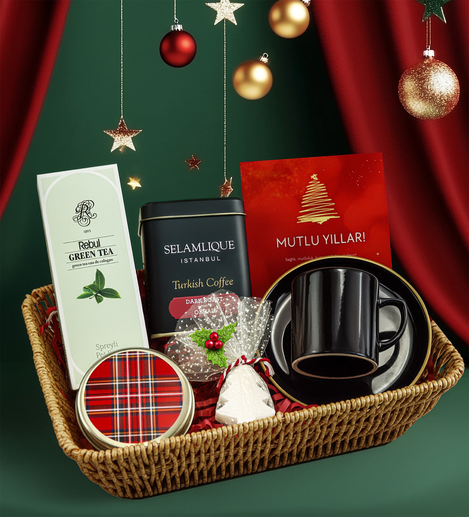 Özel Sepetinde Selamlıque & Rebul Kolonya & Gold Detay Fincan & Mum & Mini Sabun Hediye Seti