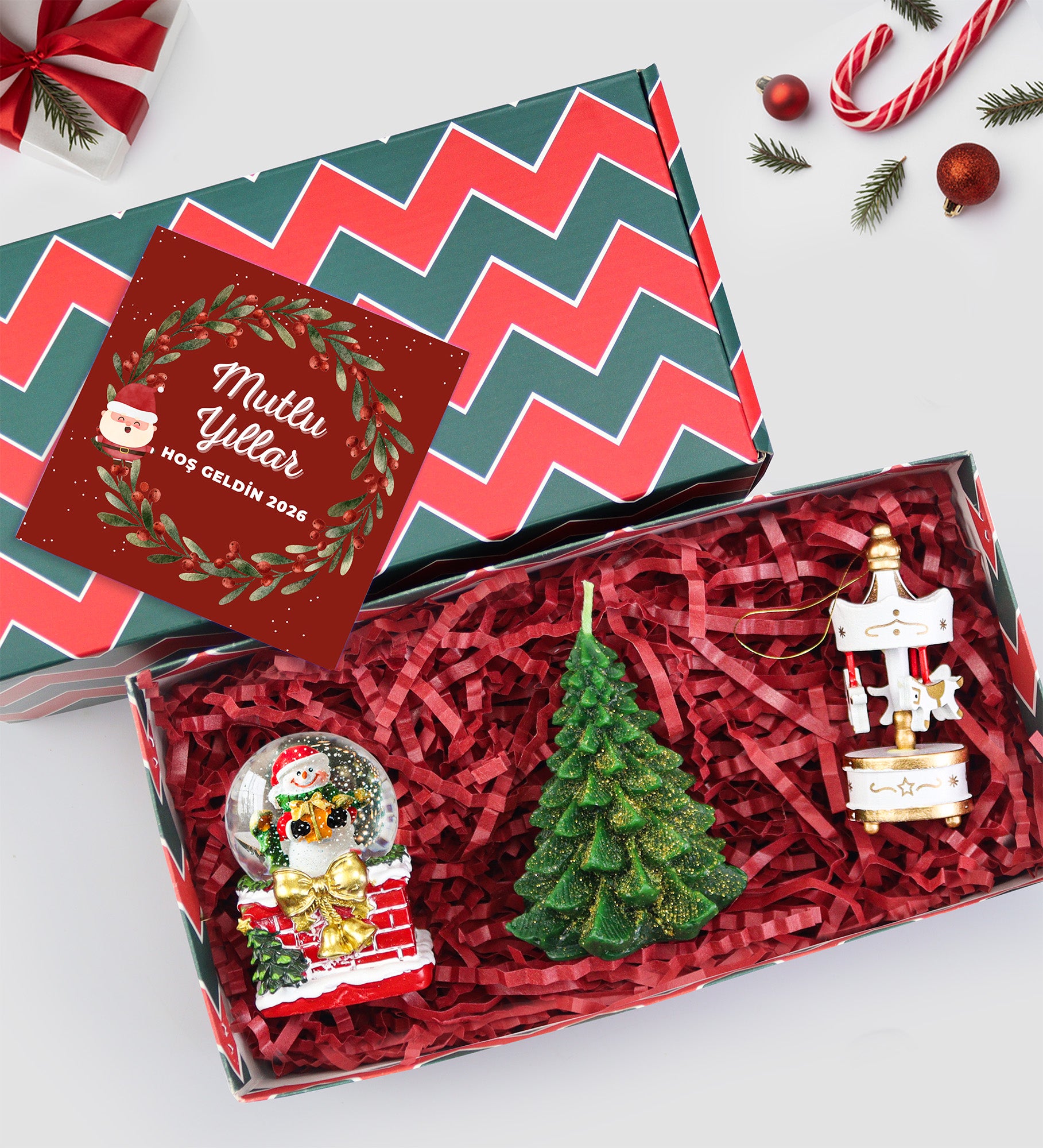 Set İçeriği: 1 Adet Atlı Karınca Anahtarlık & 1 Adet Kar Küresi & 1 Adet Çam Ağacı Mum