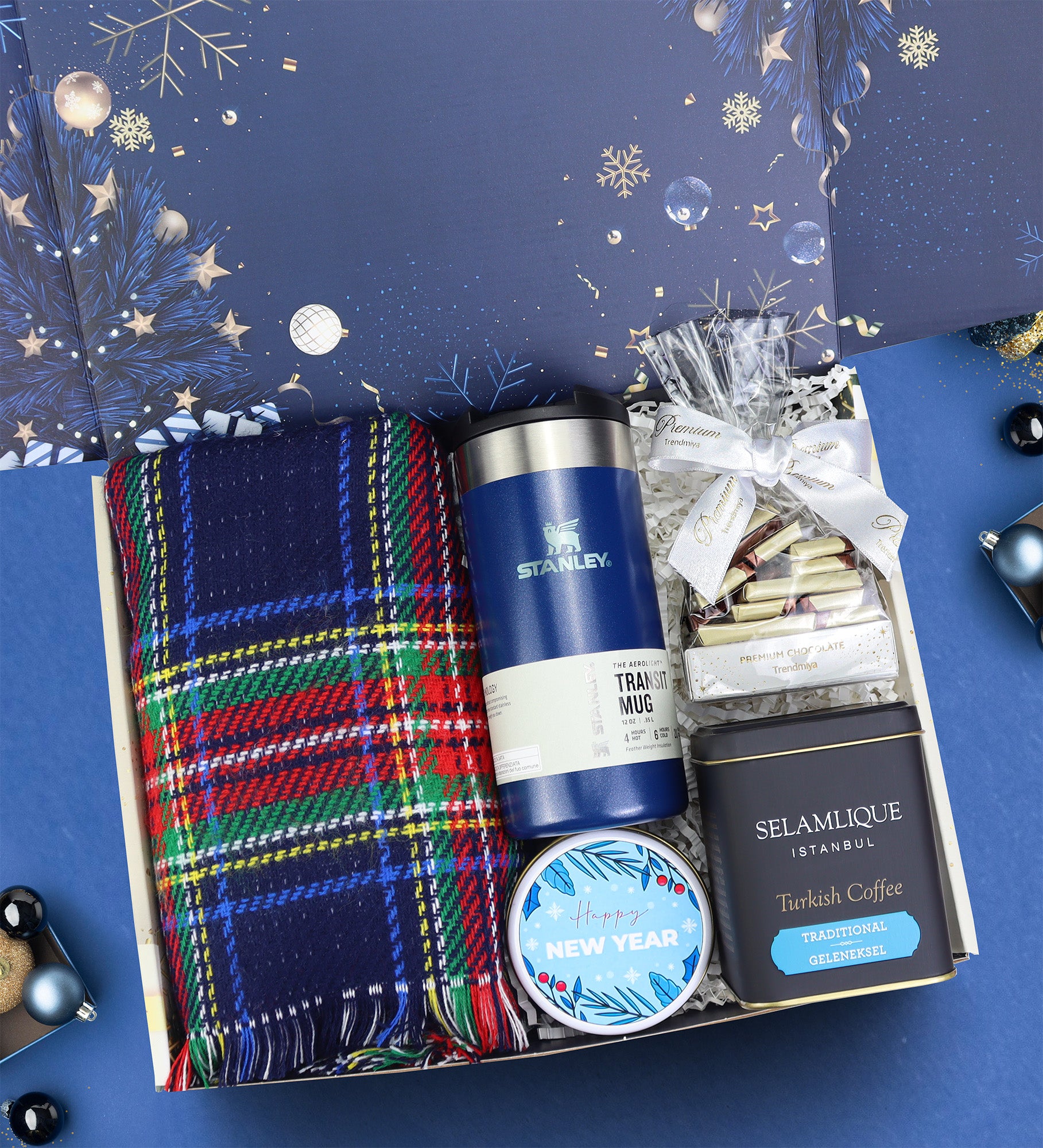 0,35L Stanley & Kalın Şal & Mum & Selamlıque & Premium Çikolata Yılbaşı Hediye Seti