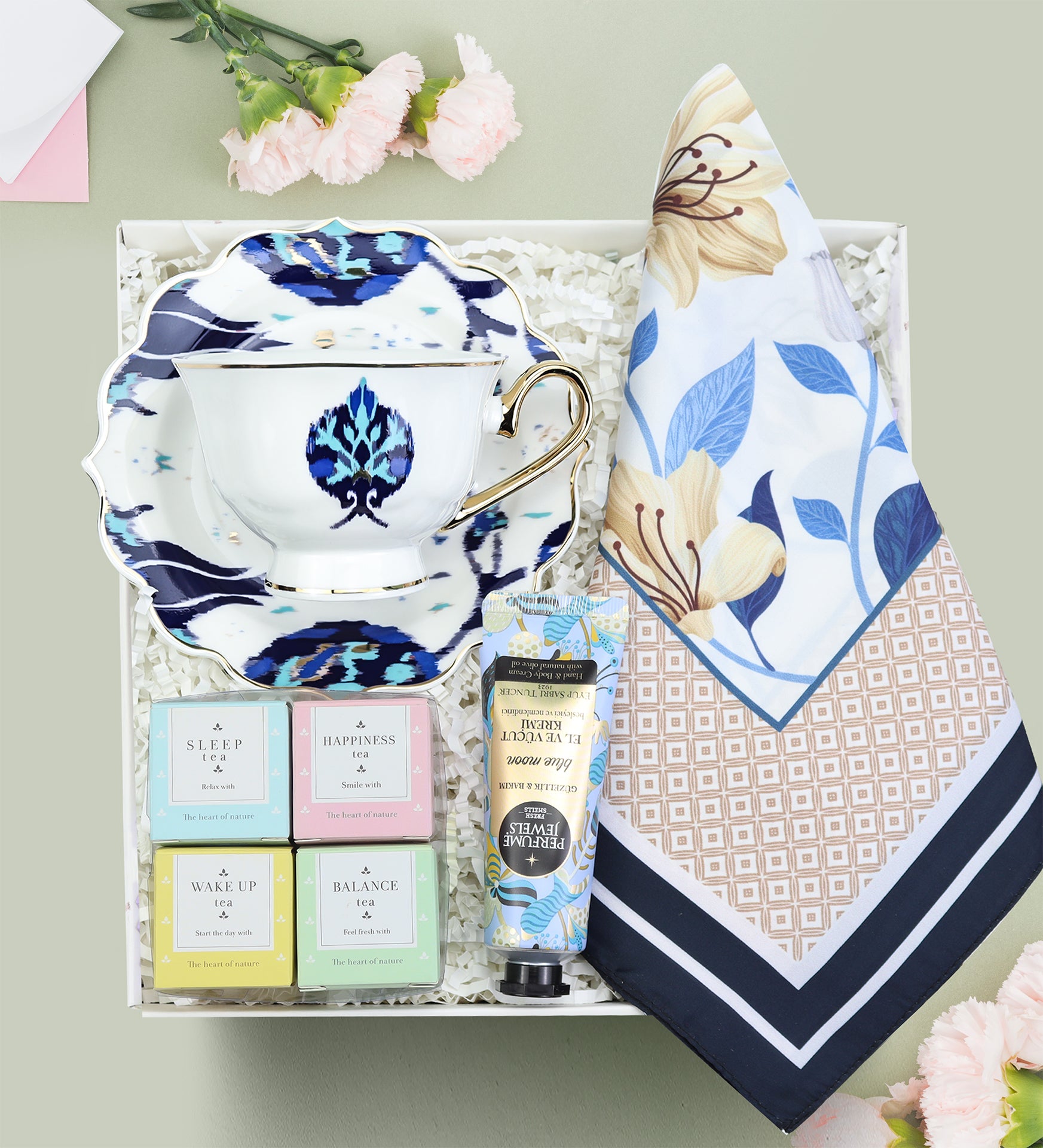Set İçeriği: 1 Adet Çay Fincanı & 1 Adet Fular & Adet Eyüp Sabri Tuncer El ve Vücut Kremİ & 4'lü Bitki Çayı