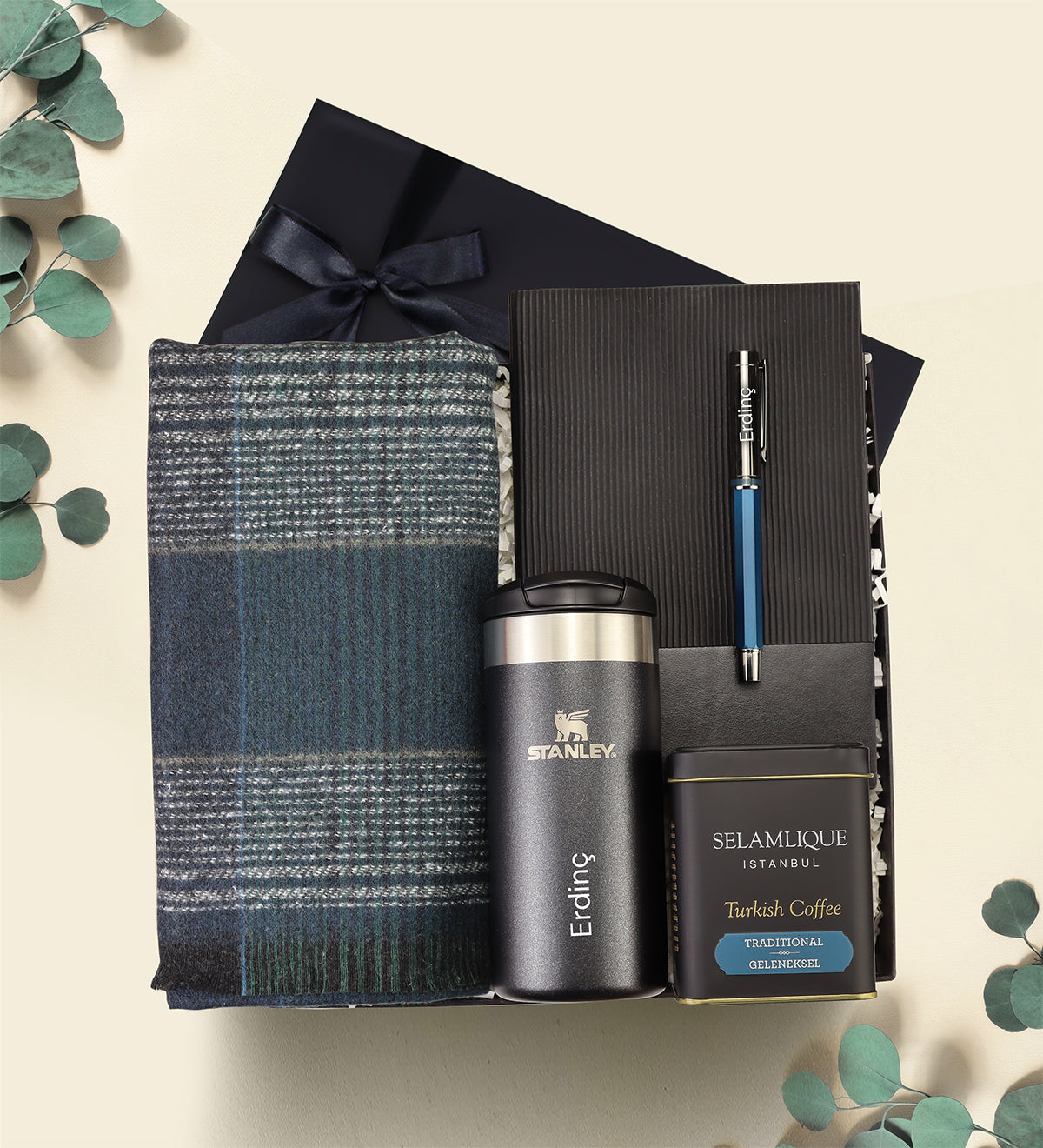Set içeriği: 1 Adet Stanley Termos & 1 Adet Esnek Kapak Defter & 1 Adet 125gr Selamlıque Türk Kahvesi & 1 Adet Roller Kalem & 1 Adet Kalın Şal