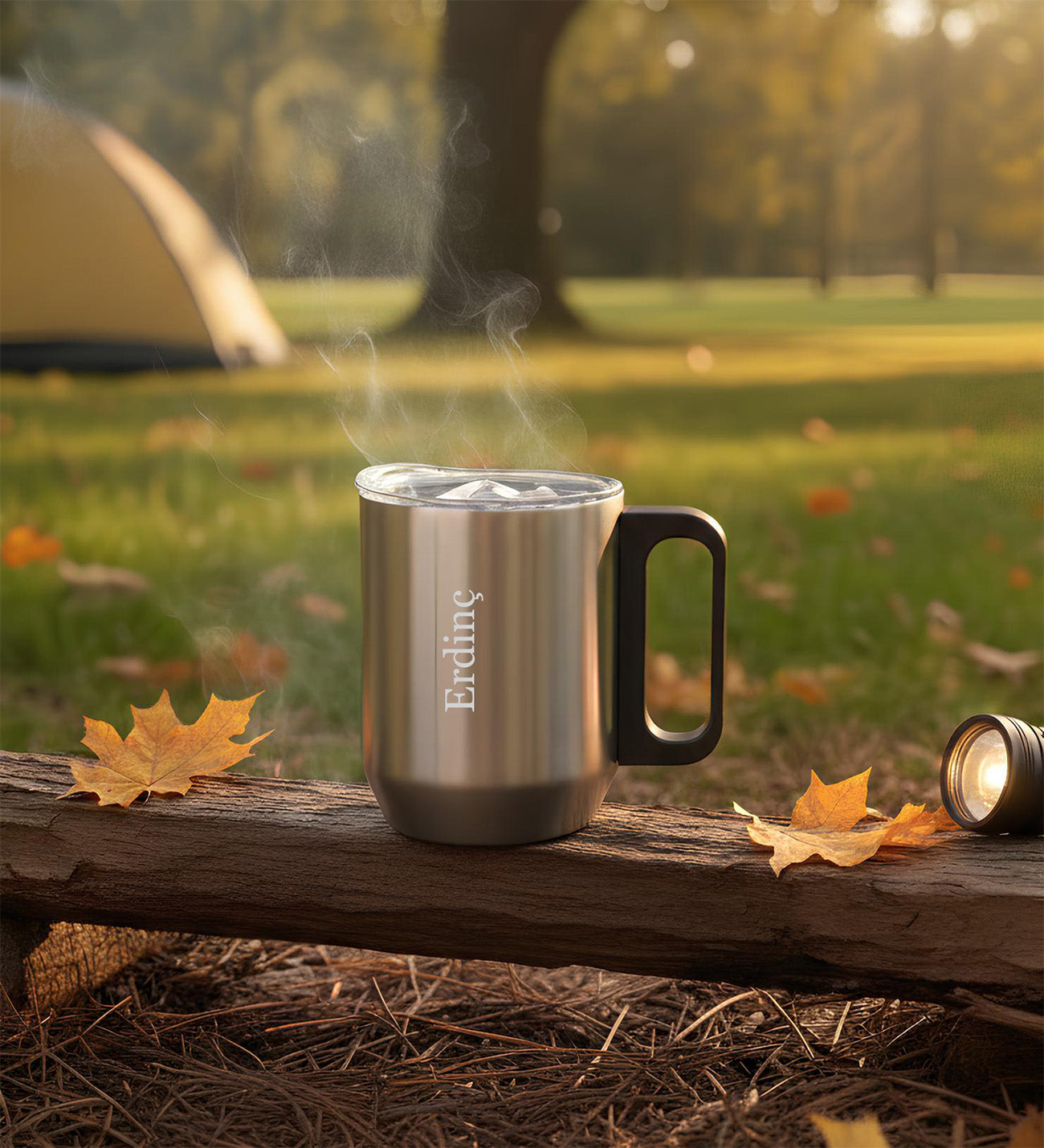 Kişiye Özel Gümüş Renk Kamp Bardak Termos 300ml