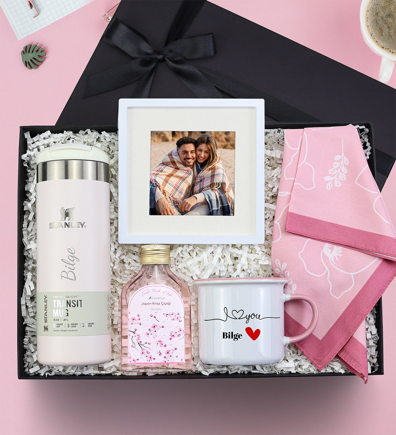 Kadına Kişiye Özel Stanley Termos Fotoğraflı Sevgililer Günü Hediye Seti