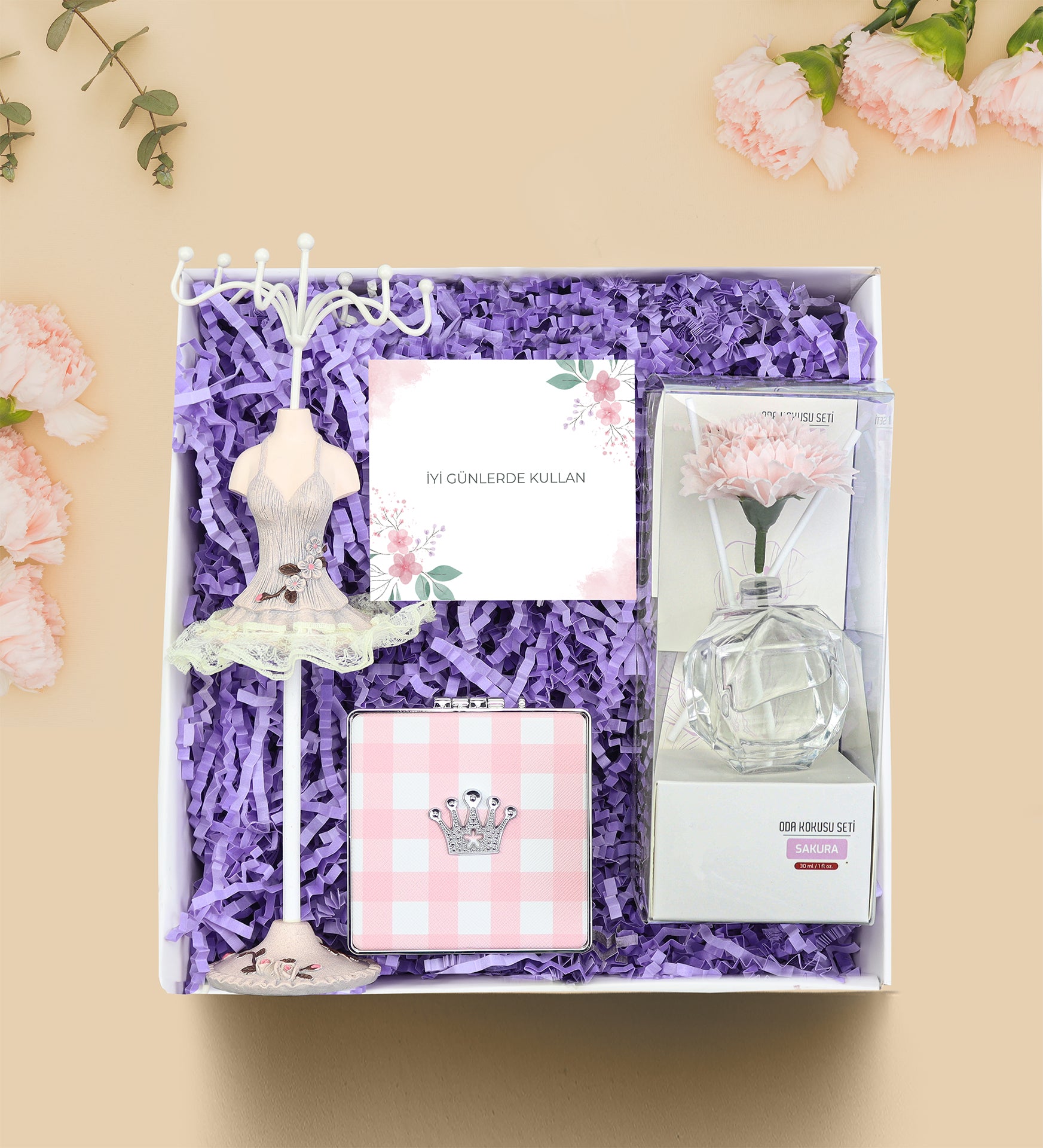 Set İçeriği : 1 Adet Kadın Figür Metal Takı Standı & 1 Adet Ayna & 1 Adet Çiçekli Oda Kokusu