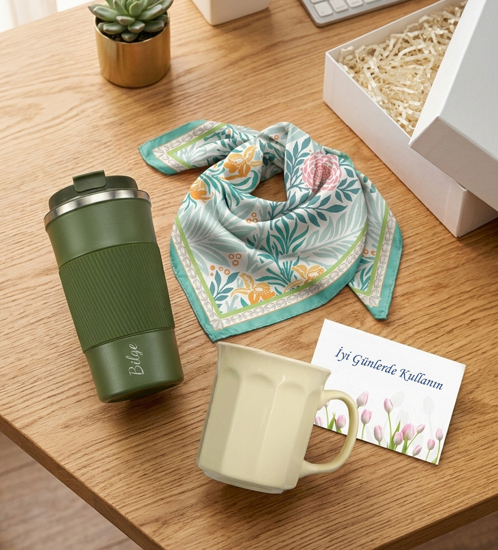 Kişiye Özel Termos Kupa Fular Hediye Seti