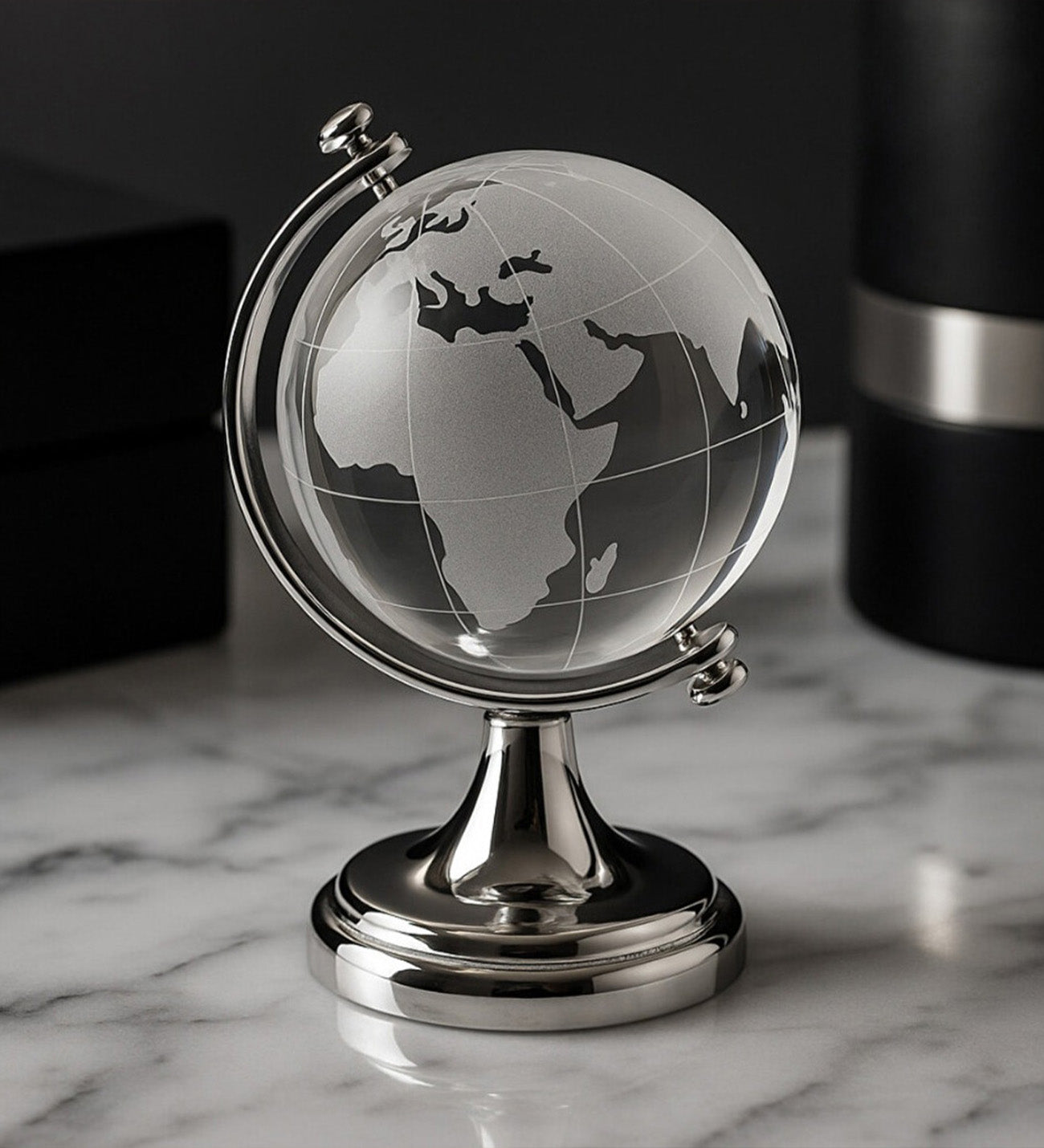 Yükseklik: 8 cmKüre : 5cmDöner küre cam malzemeden üretilmiştir.