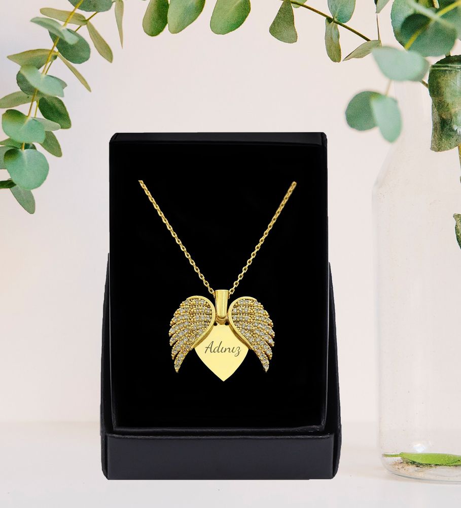 *Zirkon taşlarla süslü, kişiye özel açılır kanatlı kalp kolye tarafımıza ileteceğiniz isim ile kişiye özel hale getirilecektir.